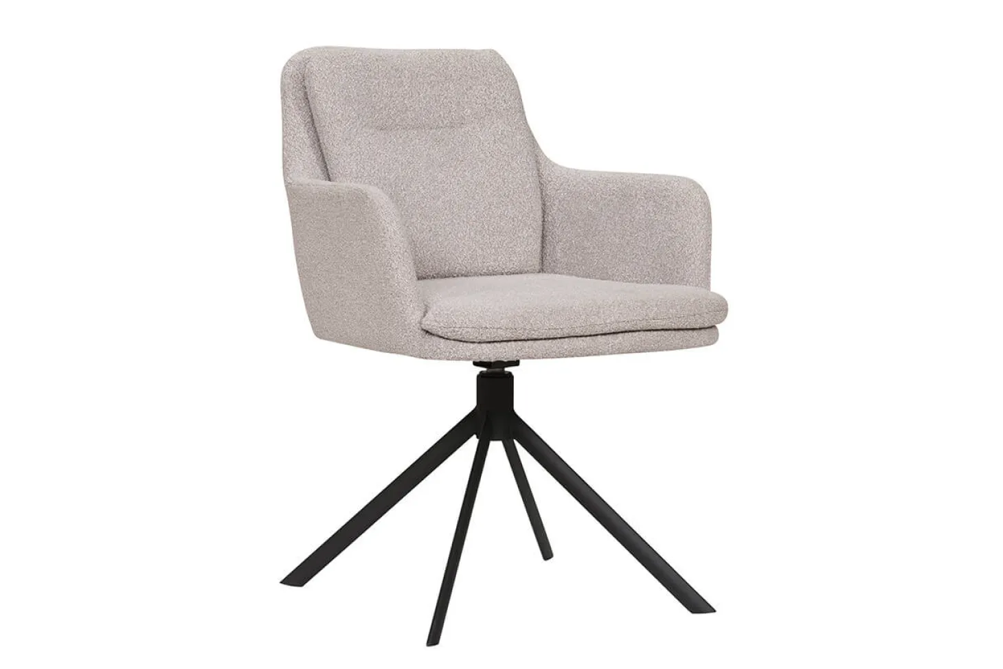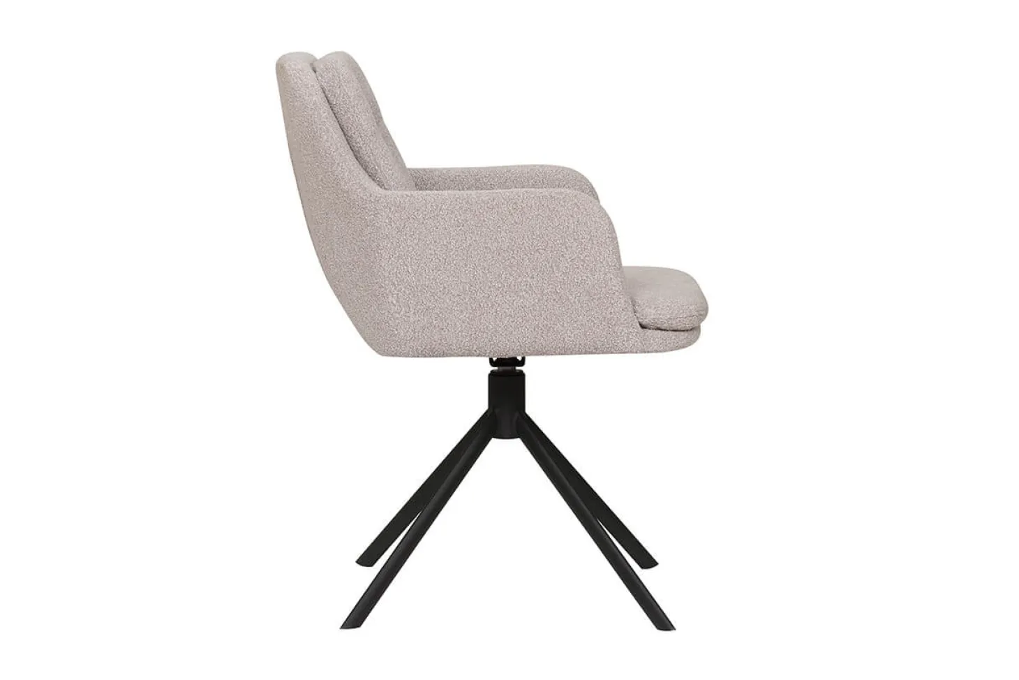 De Arezzo is een draaibare eetkamerstoel die iedere eethoek omtovert tot een stijlvol geheel. Door de trendy bouclé bekleding (zoals te zien op de foto) krijgt deze armstoel een zachte touch. Laat tijdens het tafelen je armen lekker rusten op de armleuningen. Dankzij de stoere zwarte spinpoot is dit model 360 graden draaibaar.