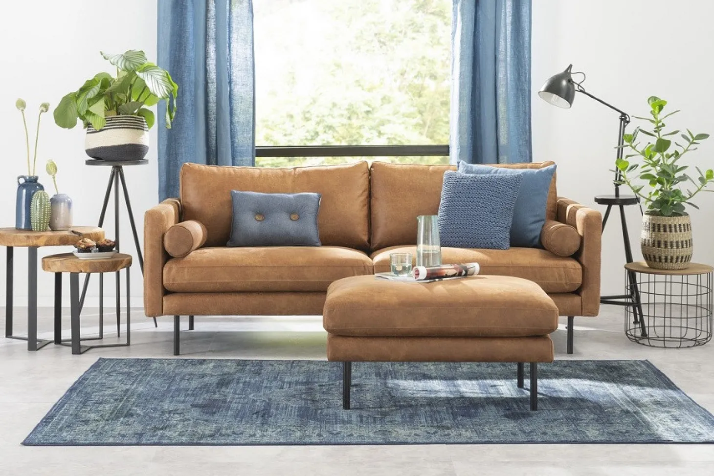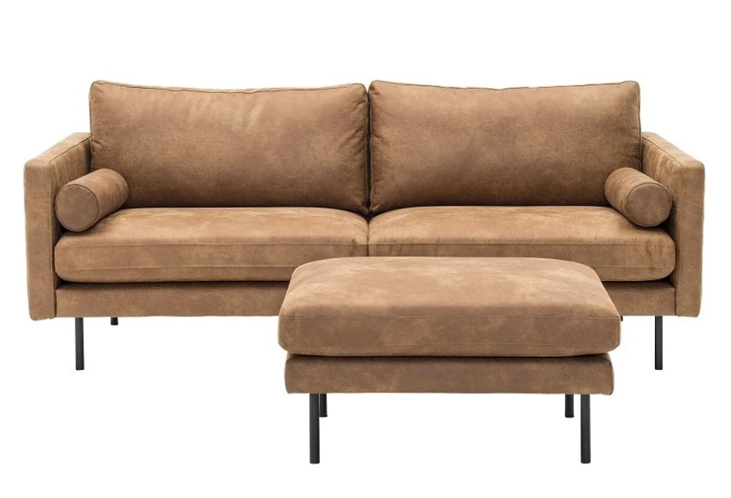 Deze stijlvolle bank heeft een fantastisch zitcomfort gecombineerd met een industriële uitstraling. Eventueel met bijpassende hocker en fauteuil.