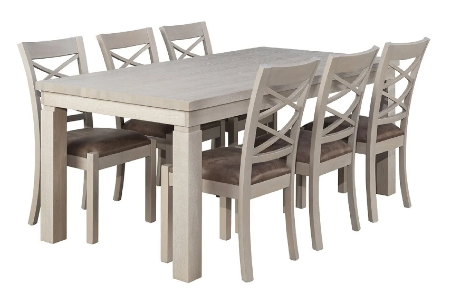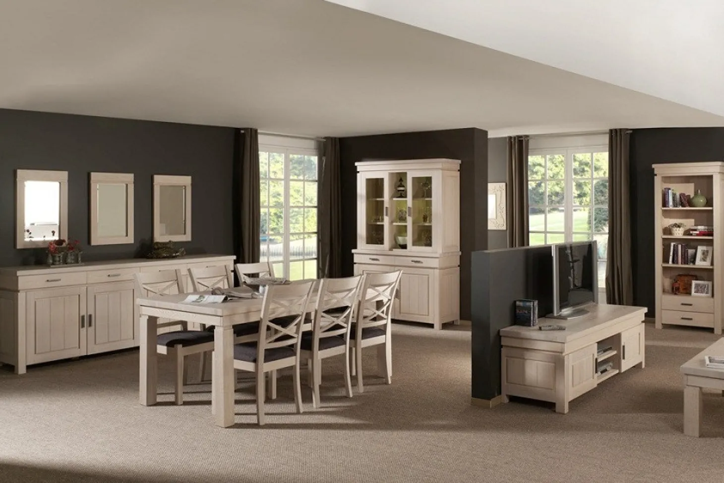 Compleet interieur in kleurstelling geborsteld en vergrijsd eiken. Deels massief eiken. Set bestaat uit meerdere bijpassende items. Beschikbaarheid en samenstelling van de set kan per vestiging verschillen. Prijs is op basis van goedkoopste samenstelling.