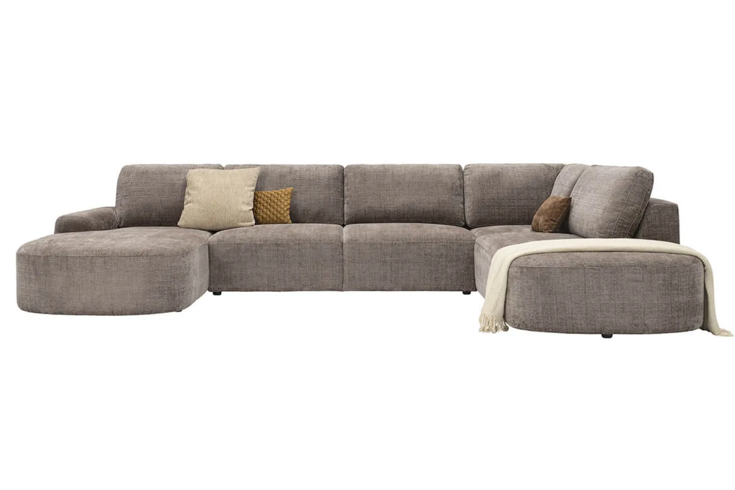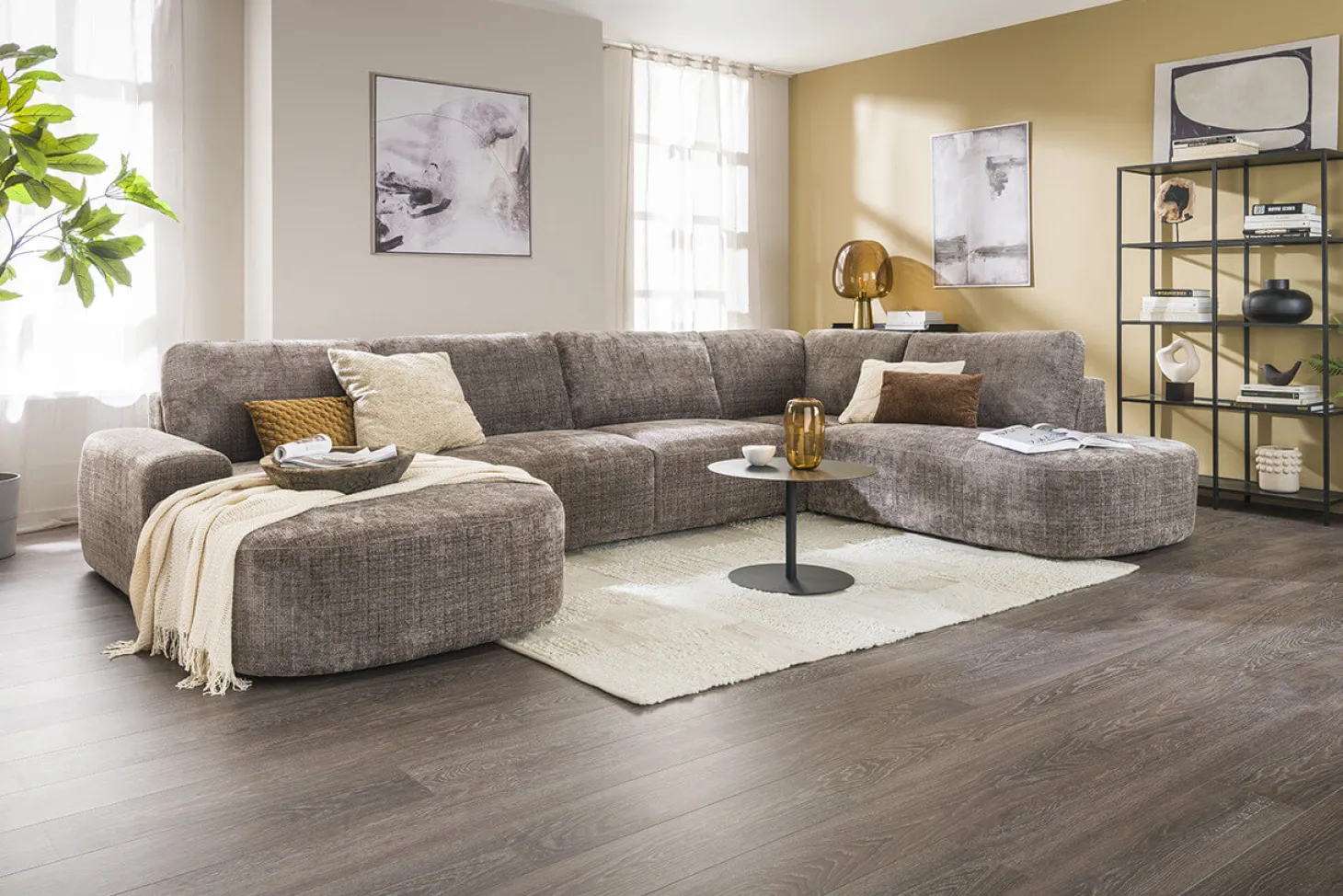Comfortabele hoekbank met organische vormen. Mooi design, strak afgewerkt. Prijs als Longchair+3½+Hoek+1½-Terminal in stof Atletico. Ook in andere opstellingen en kleuren leverbaar.