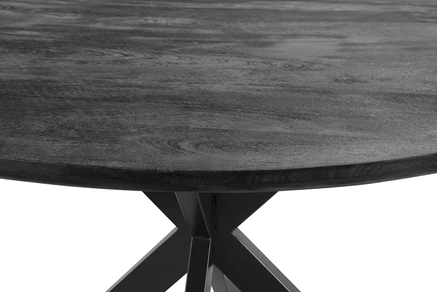 Ronde mango eettafels zijn tegenwoordig dé trend en daarom graag gezien in de eetkamer. Model Canberra is daar een voorbeeld van. Deze eettafel heeft een stoer karakter en past goed in een industrieel, modern of strak interieur. De eettafel van model Canberra is uitgevoerd in mango hout met een zwart tafelblad en matrixpoot. Dit model is onze tip wanneer een compacte eethoek voor 4 – 6 personen ingericht moet worden. Een ronde eettafel zorgt voor een gezellige sfeer tijdens het tafelen.