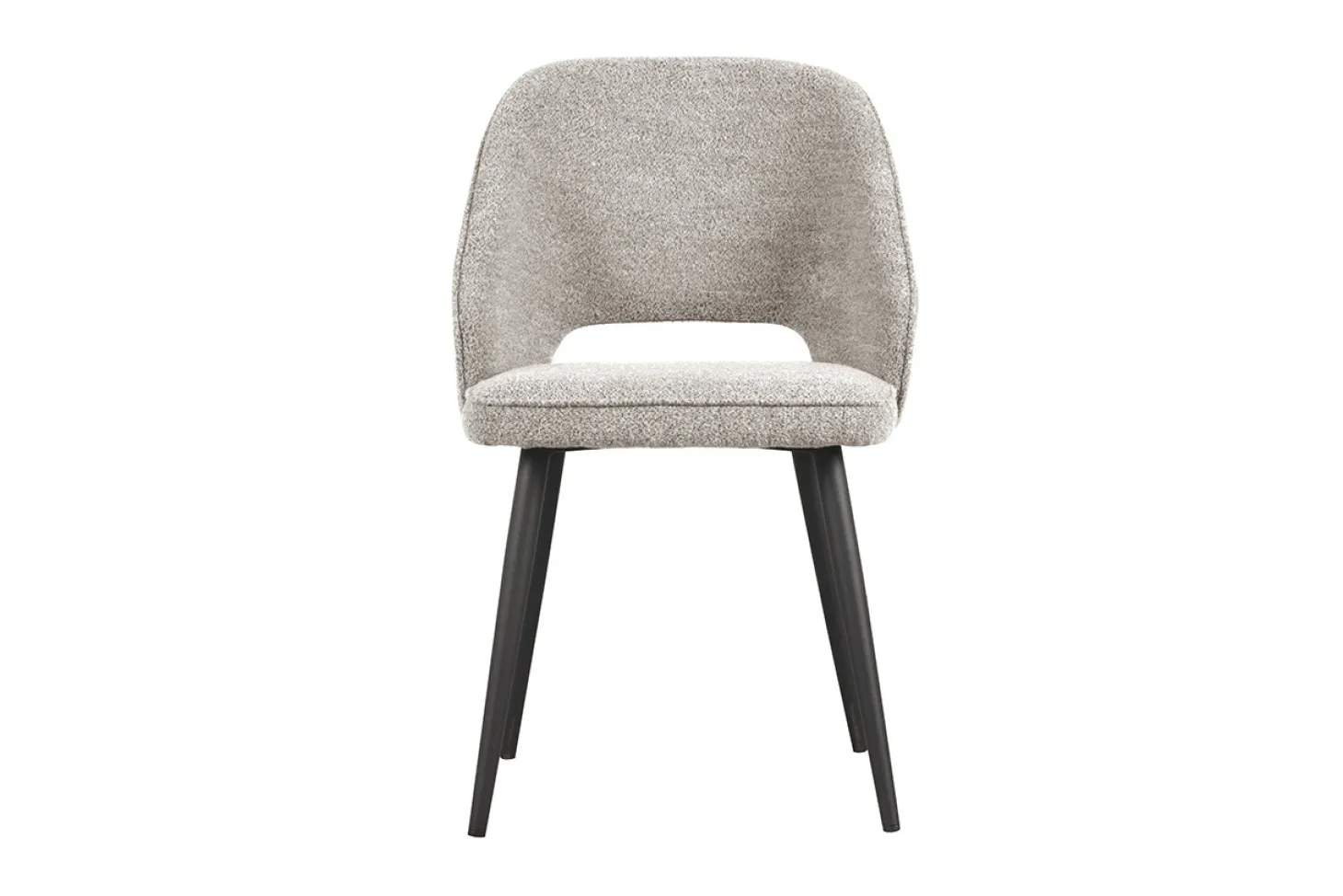Stijlvolle eetkamerstoel met speelse uitsparing in de rugleuning. Prijs is per stuk in stof Supreme. Uitsluitend leverbaar per set van 2 stuks.