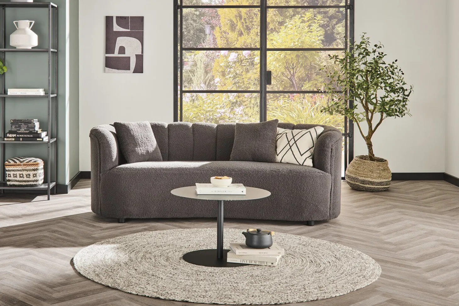 Trendy bankstel met rond organisch design. Prijs is op basis van goedkoopst beschikbare uitvoering. Uitvoering en beschikbaarheid kan per vestiging verschillen.
