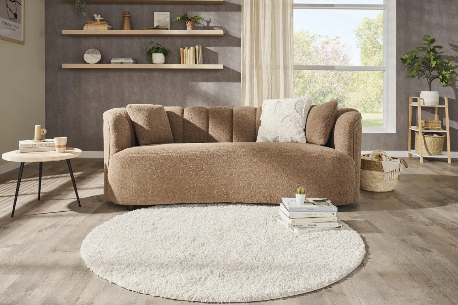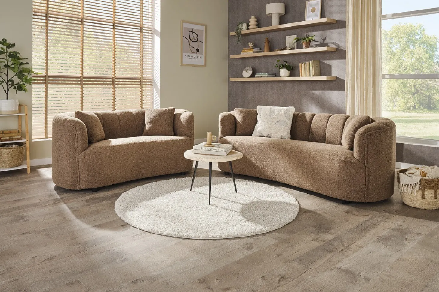 Trendy bankstel met rond organisch design. Prijs is op basis van goedkoopst beschikbare uitvoering. Uitvoering en beschikbaarheid kan per vestiging verschillen.