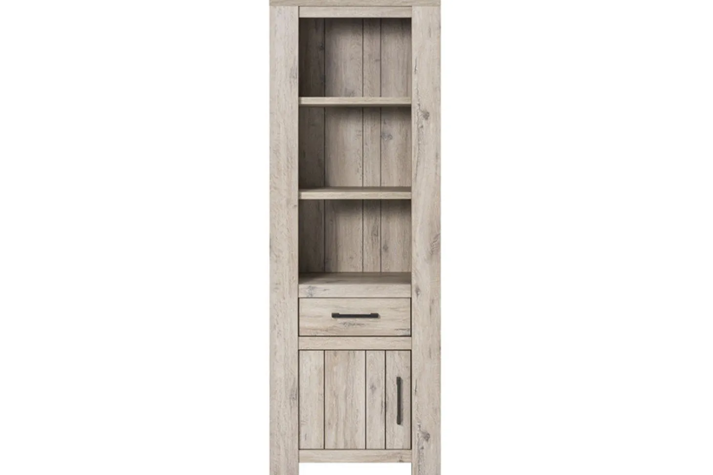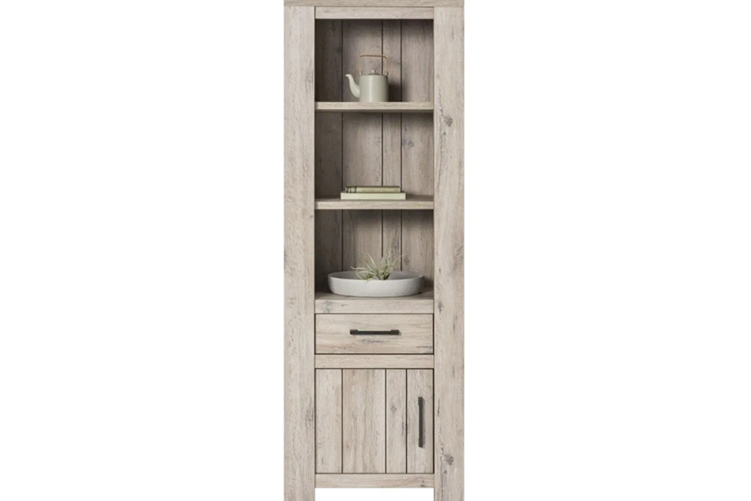 Bergkast in kleurstelling mud oak. Ook bijpassende meubels beschikbaar. Met handige opbergruimten.