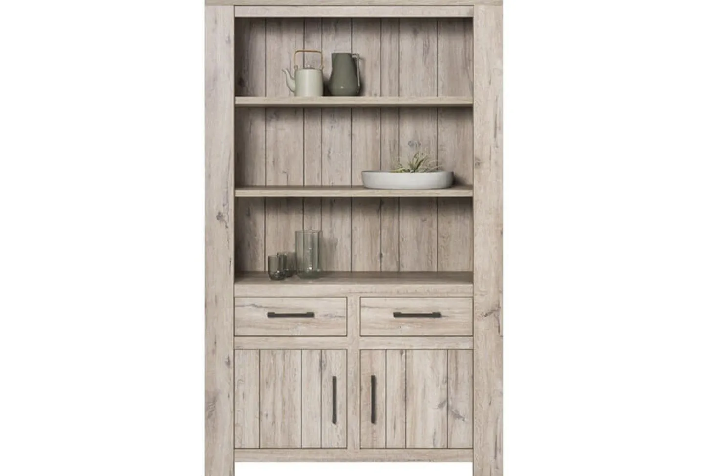 Boekenkast in kleurstelling mud oak. Ook bijpassende meubels beschikbaar. Met handige plankindeling.