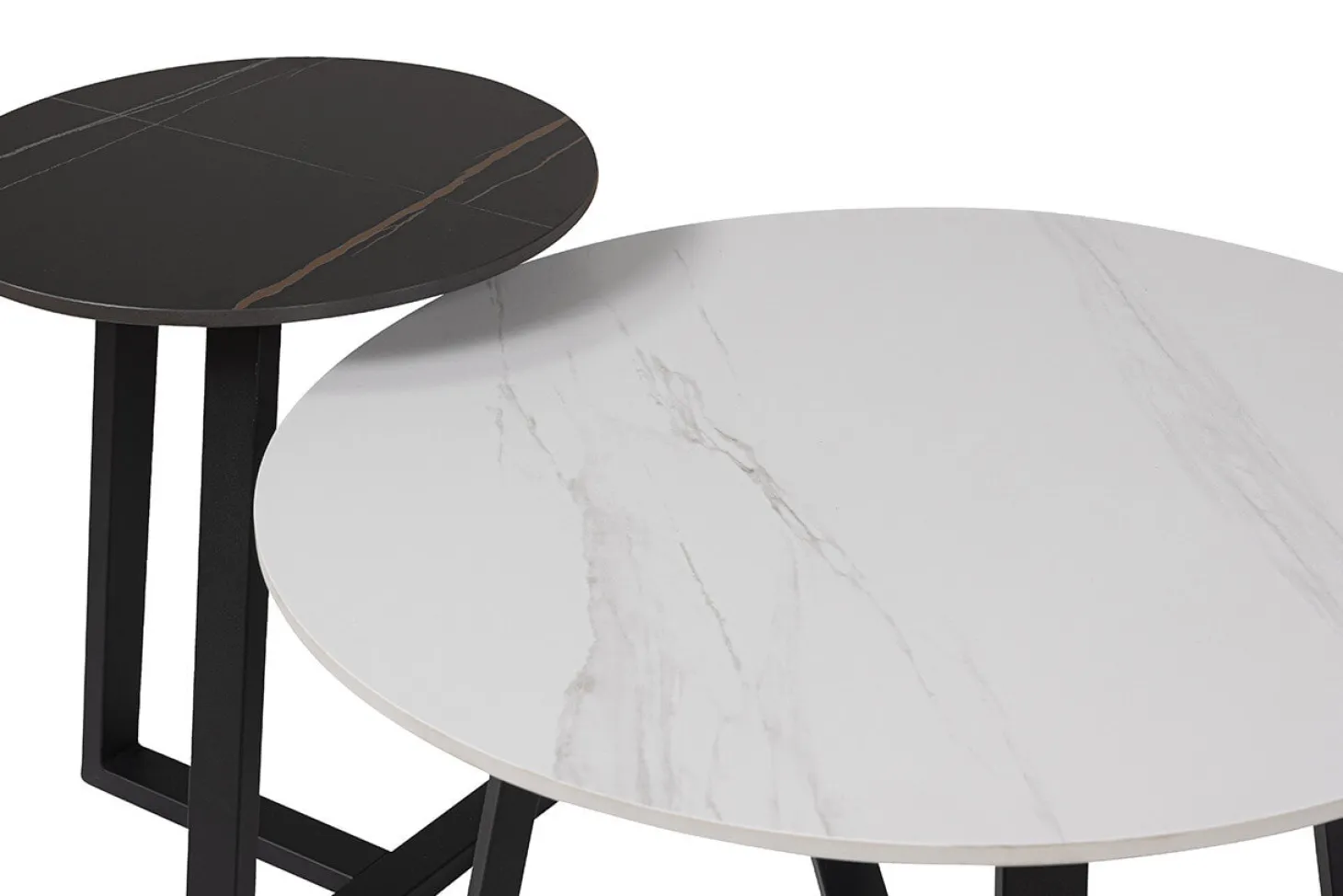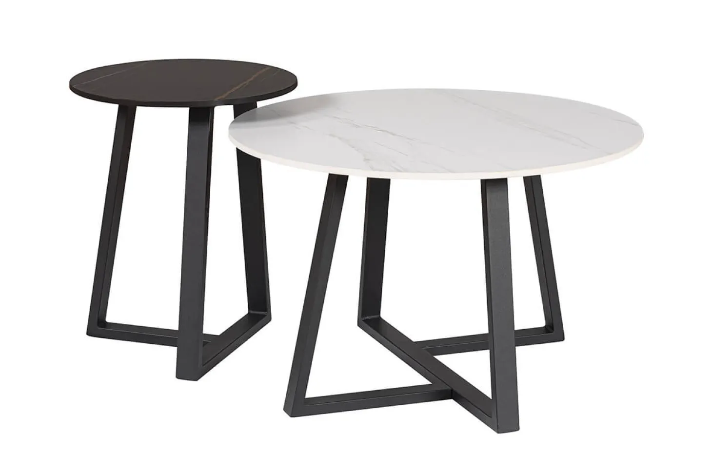 Set van 2 salontafels met krasvast keramieken bovenblad en metalen onderstel. Hoogwaardige kwaliteit en luxe design.