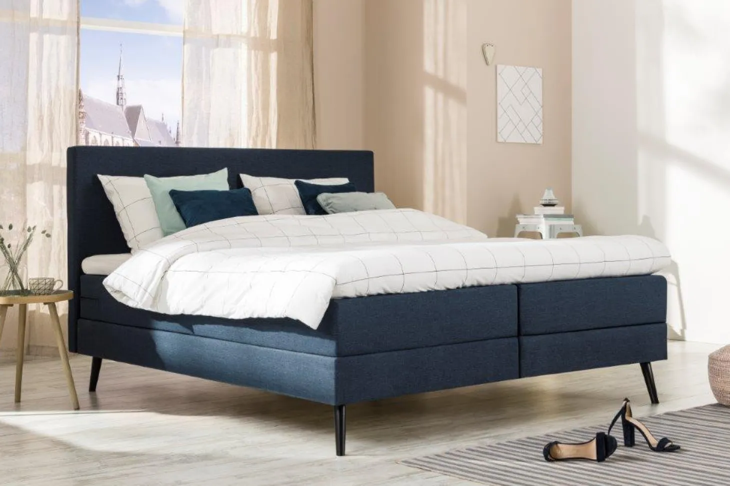 Complete 2-persoons boxspringcombinatie met zwevend hoofdbord en slanke pootjes. Prijs is op basis van goedkoopst beschikbare uitvoering. Uitvoering en beschikbaarheid kan per vestiging verschillen.