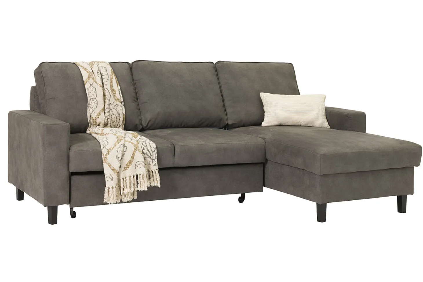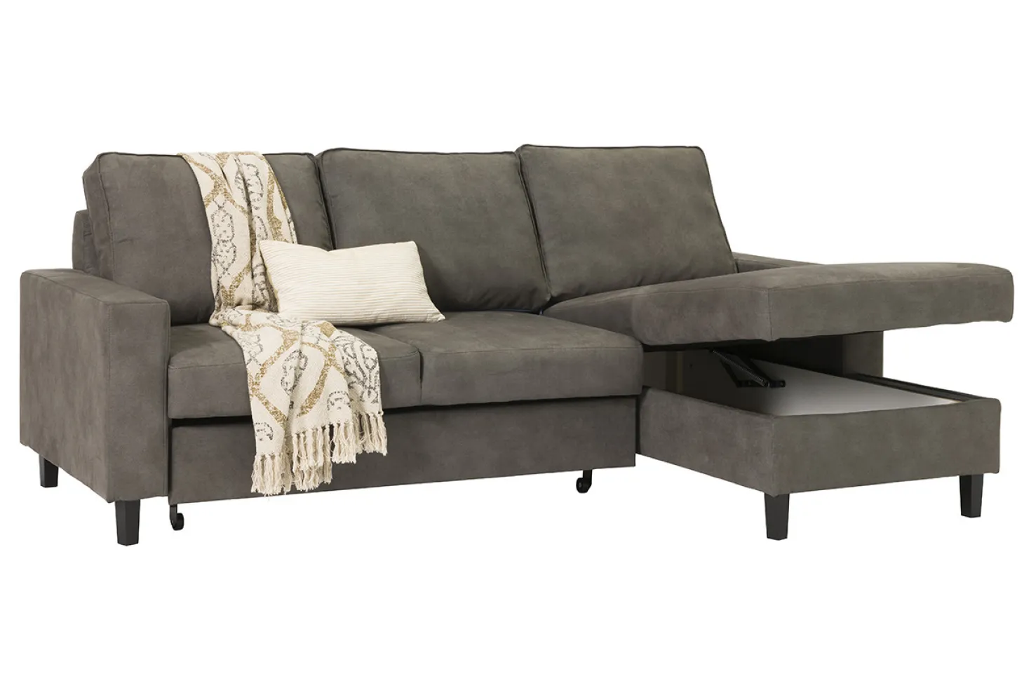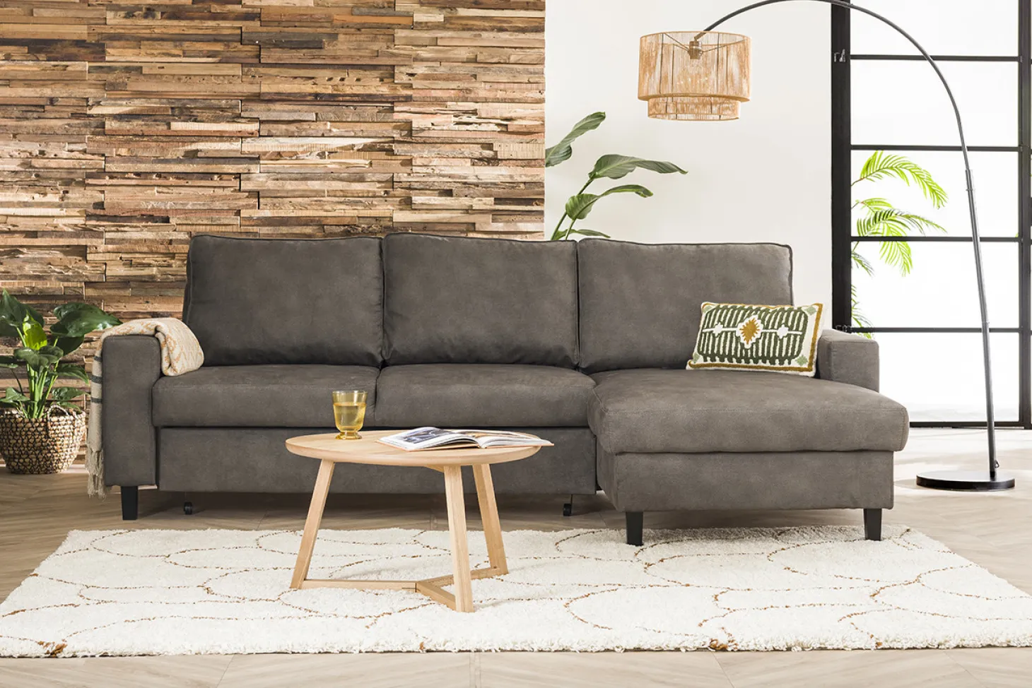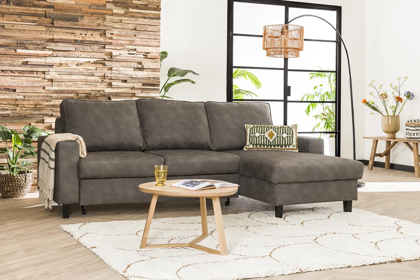 Deze strak vormgegeven hoekbank heeft niet alleen een moderne uitstraling maar is ook nog eens erg praktisch. En in een handomdraai wordt een comfortabele plek gecreëerd waar de benen even heerlijk uitgestrekt kunnen worden. Deze hoekbank is heel goed te combineren met diverse woonstijlen. Door het lounge-gedeelte is de bank uitschuifbaar en zeer uitnodigend om lekker op te ontspannen.
