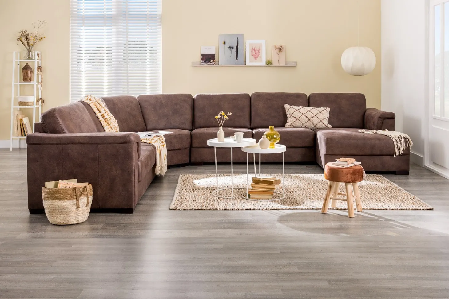 Model Lucca is een stoere en robuuste hoekbank met longchair en brede armleggers. Ideaal voor ontspannen zitten of lekker languit liggen.