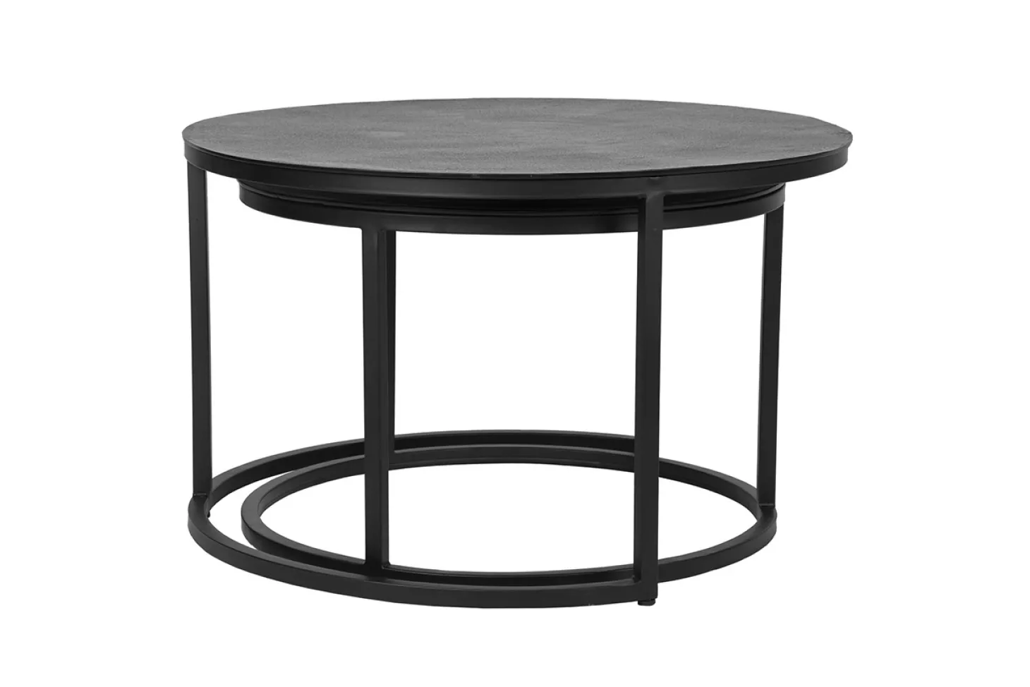 Salontafel Master is een set die bestaat uit twee ronde salontafels met ieder een eigen afmeting (75x75x45 cm en 62x62x41cm). De tafelbladen zijn gemaakt van gegoten metaal en hebben een speels craquelé effect. Samen met het metalen frame krijgt salontafelset Master een industrieel karakter, maar door zijn eenvoud past deze set in iedere woonstijl. De twee handzame salontafels kun je wegzetten zoals jij wilt, of onder elkaar schuiven wanneer dit nodig is.