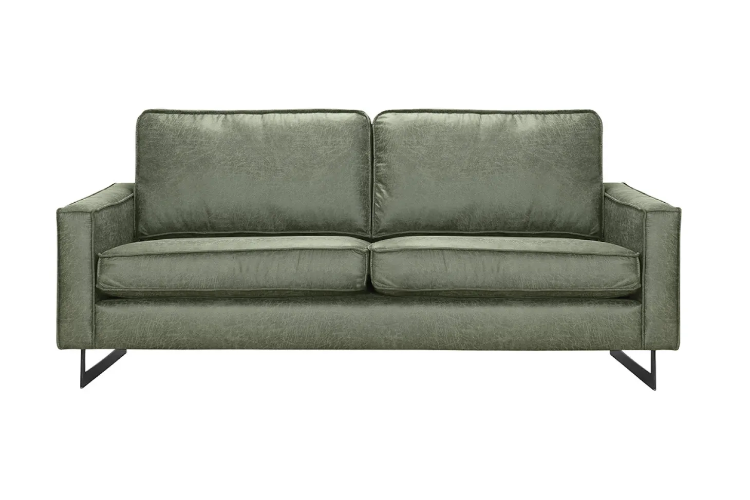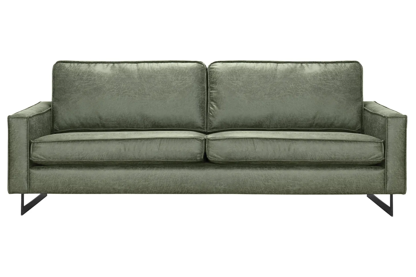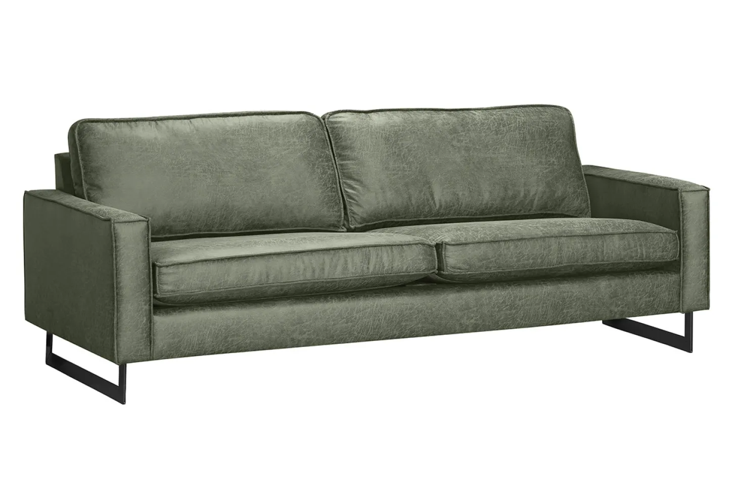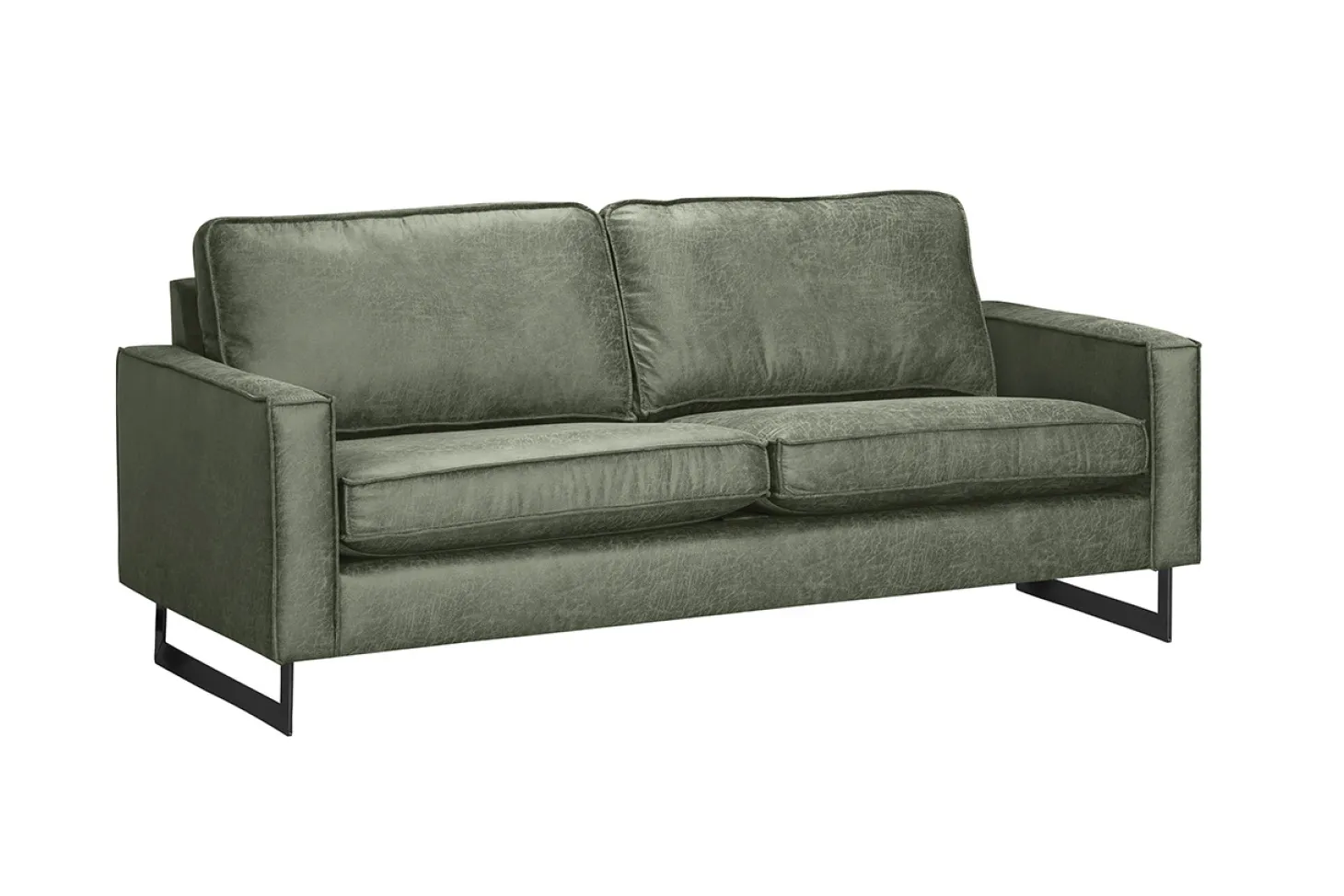 Industrieel bankstel met sledepoot en stoer stiksel. Diverse kleuren, bekledingen en opstellingen mogelijk. Aanbieding in stof Atletico.