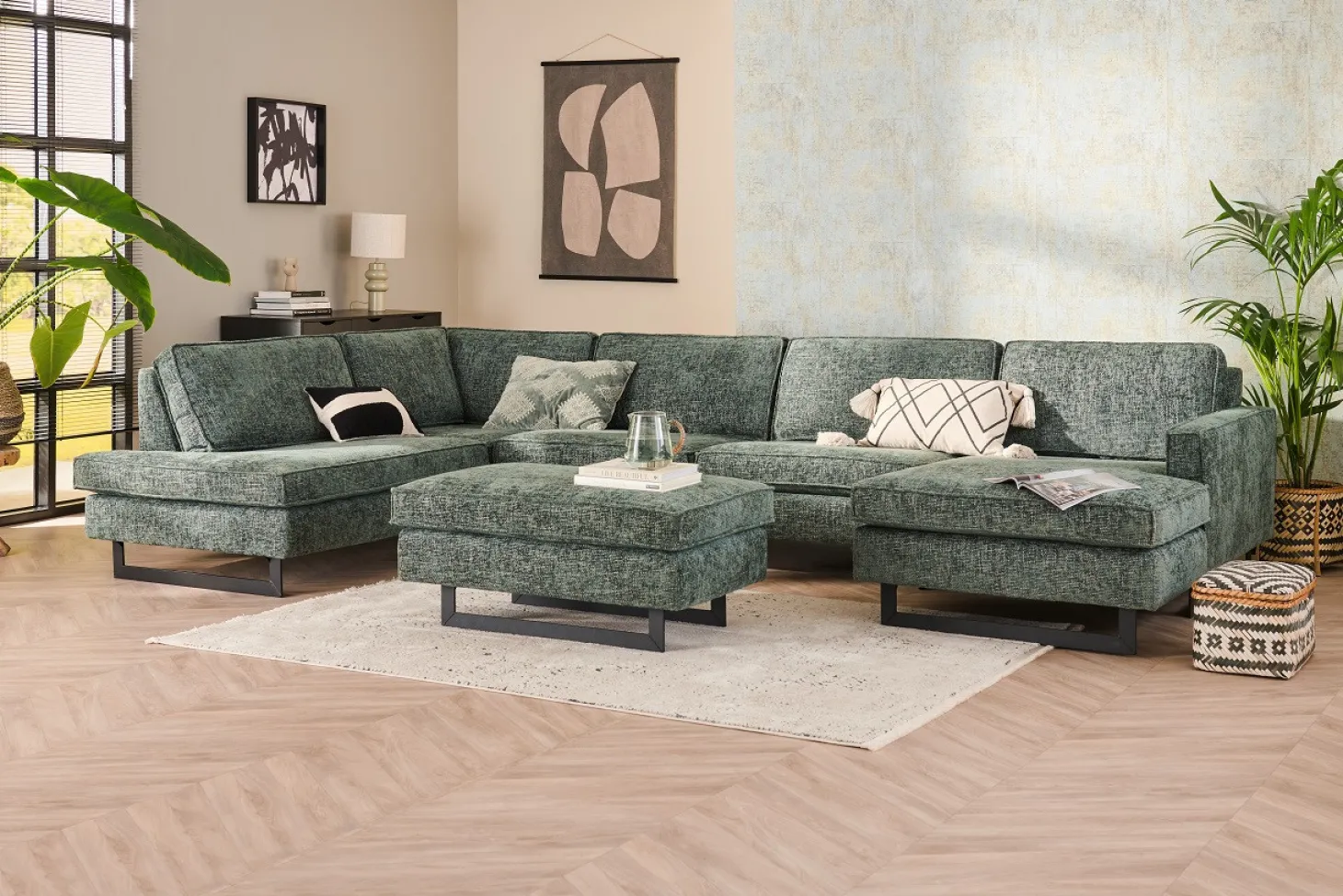 Een echte eye-catcher! Model Mexico is een hoekbank met een moderne of industriële uitstraling en een echte design-look. Dit komt mede door de slanke metalen sledepoot, samen met het prachtig afgewerkte stiksel geeft dit de Mexico een stoer en robuust uiterlijk. De Mexico kan helemaal naar wens worden samengesteld en is leverbaar in diverse kleuren en categorieën stof of ledersoorten. Naast de opstelling als U-bank is dit model ook mogelijk als 3-2-1 zits en andere hoekopstellingen, eventueel met bijpassende hocker.