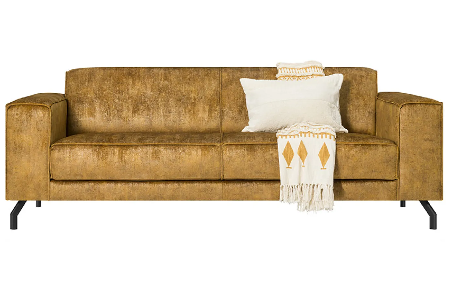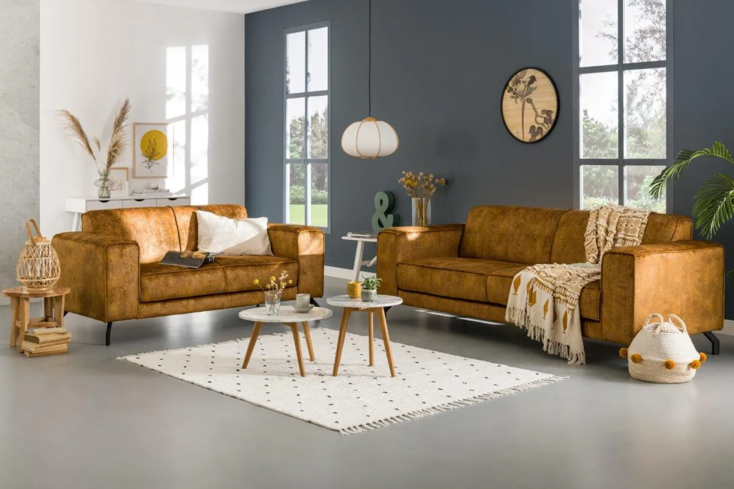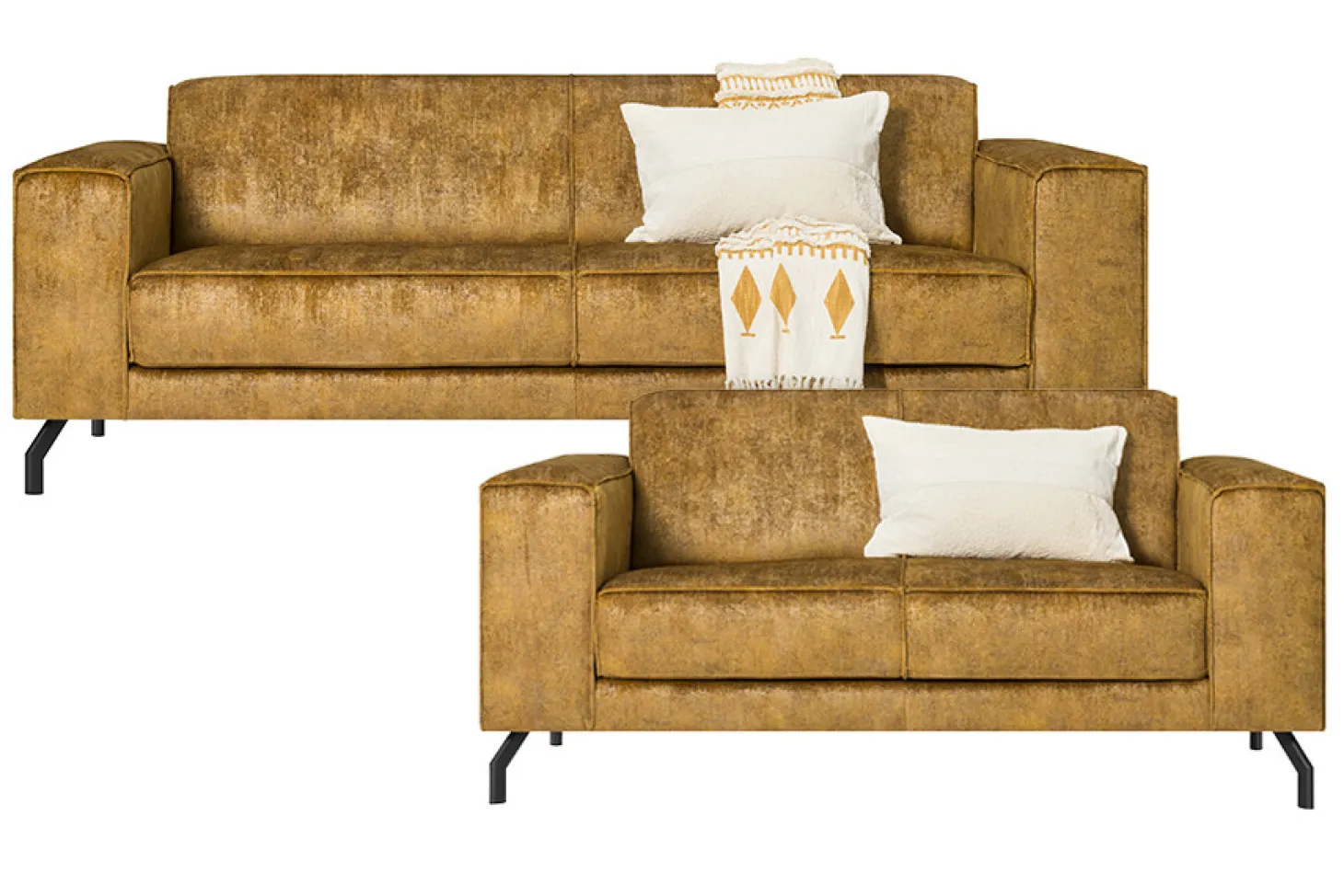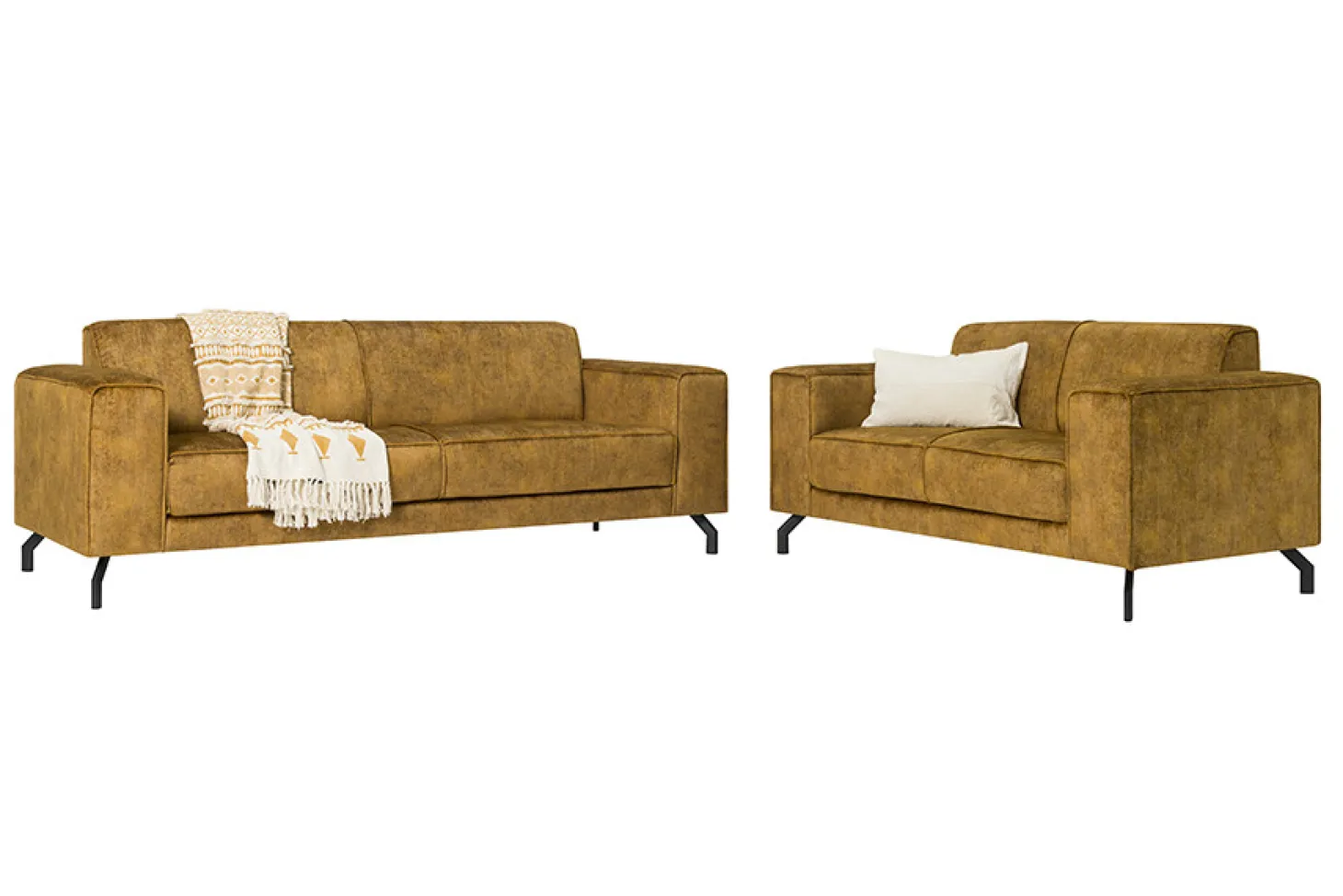 Trendy bankstel met retro look. Dankzij de slanke poten en strakke vormgeving kan dit model gecombineerd worden in iedere woonstijl. Afgewerkt met luxe koordstikel. Dit model heeft een comfortabele zit.