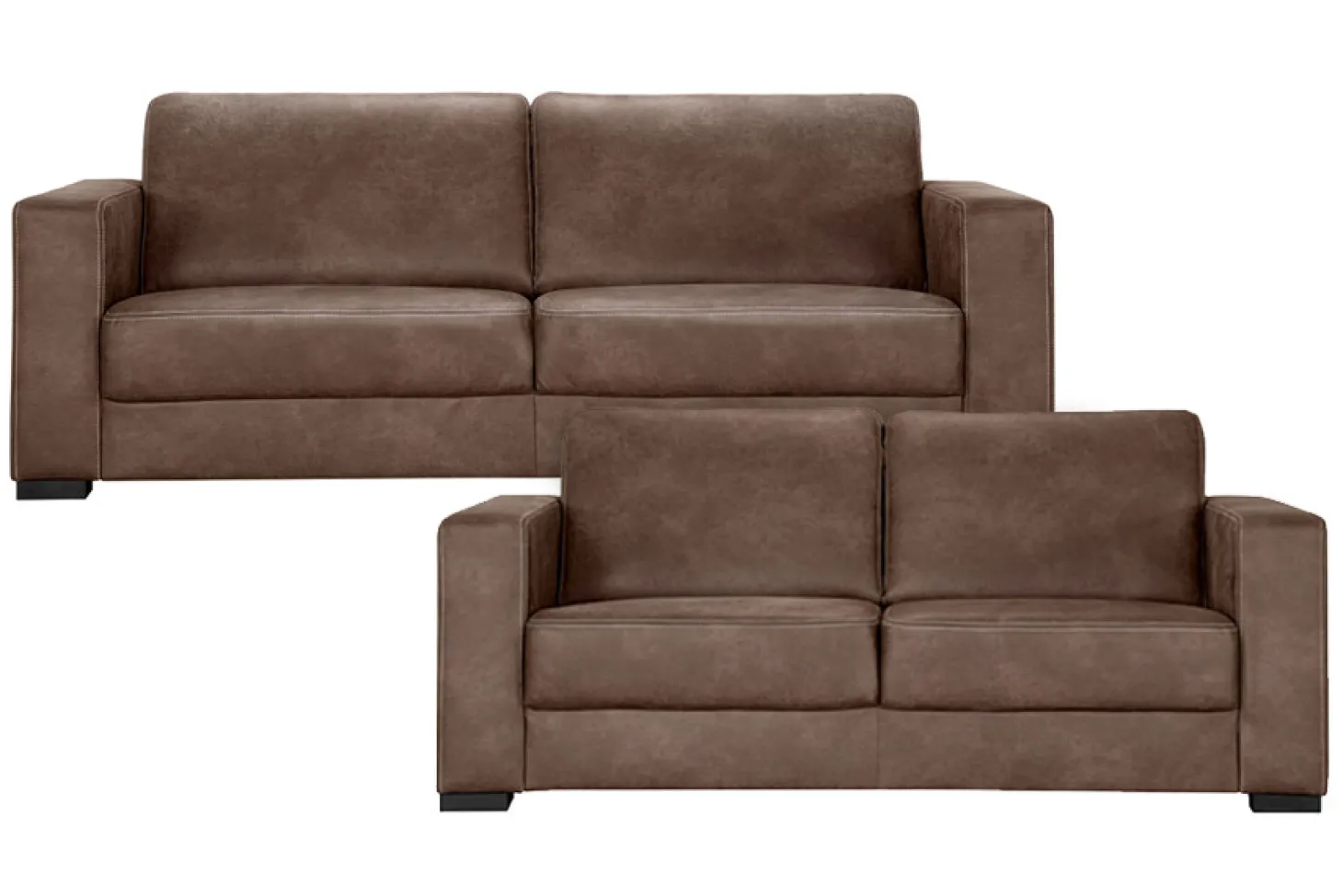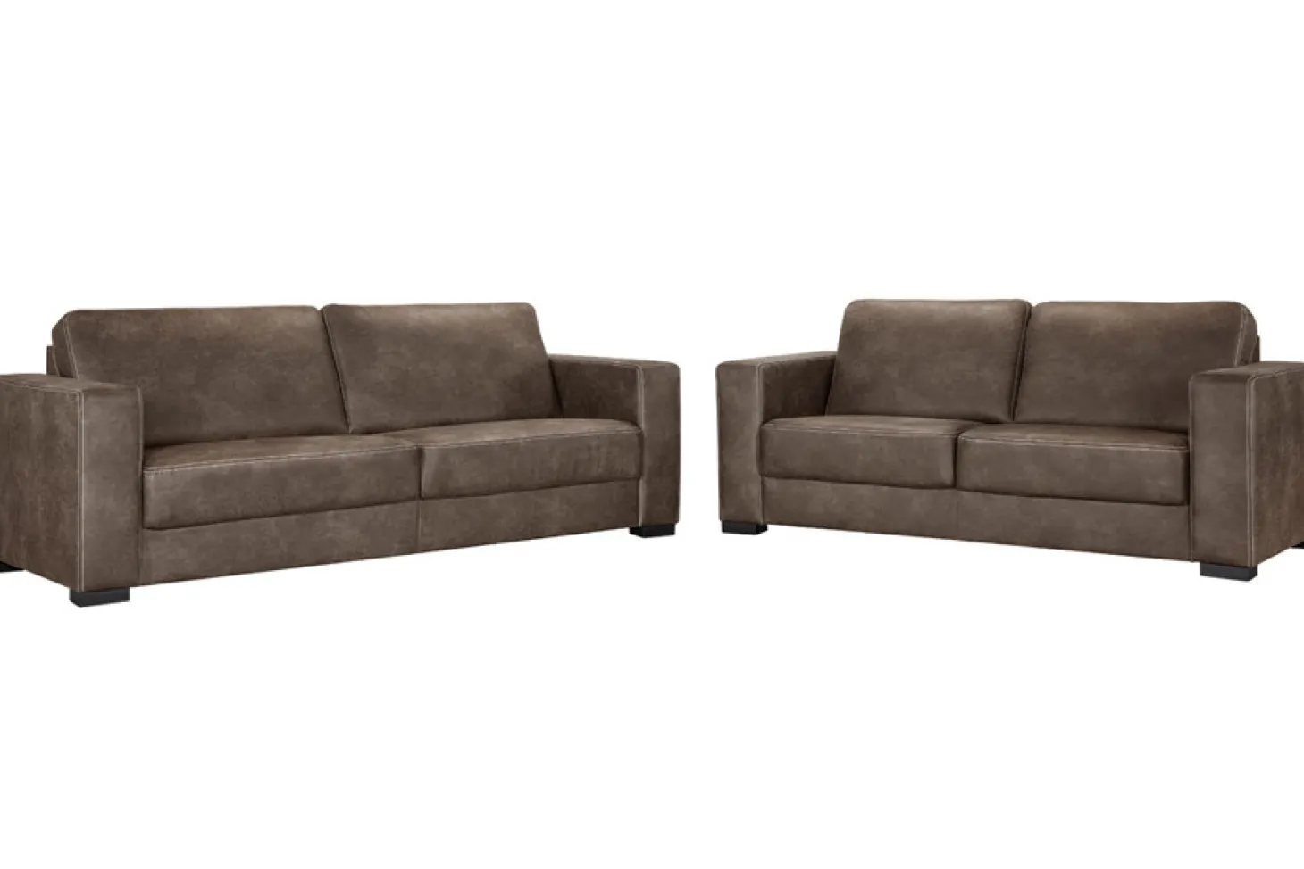De Modena is een stoer en robuust bankstel. Prachtig afgewerkt met contrast-stiksel (naar keuze). Prijs als 2½+2 zits in stof Atletico.