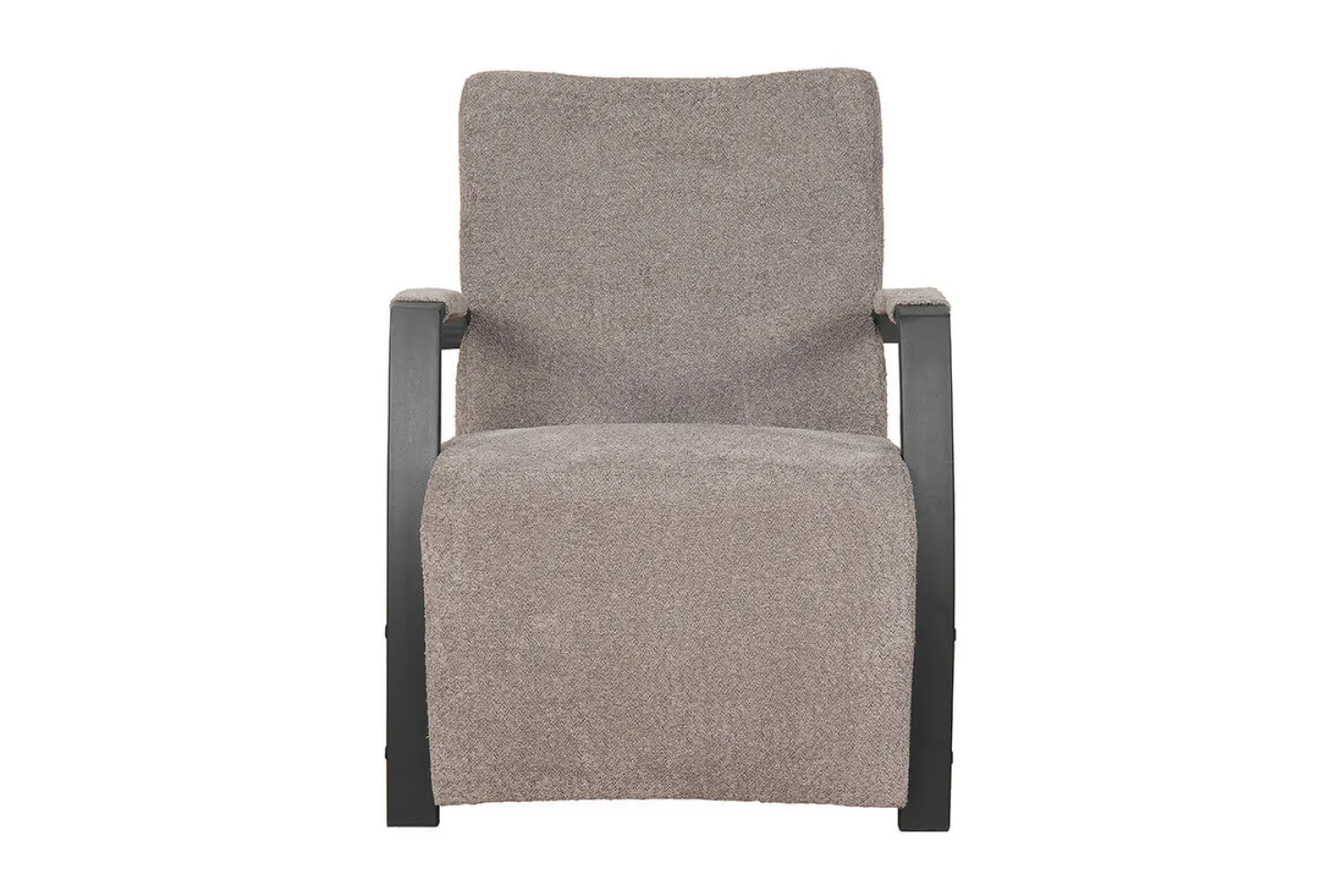 Stoere fauteuil met gewelfde metalen armleuningen. Prijs is op basis van goedkoopst beschikbare uitvoering. Uitvoering en beschikbaarheid kan per vestiging verschillen.
