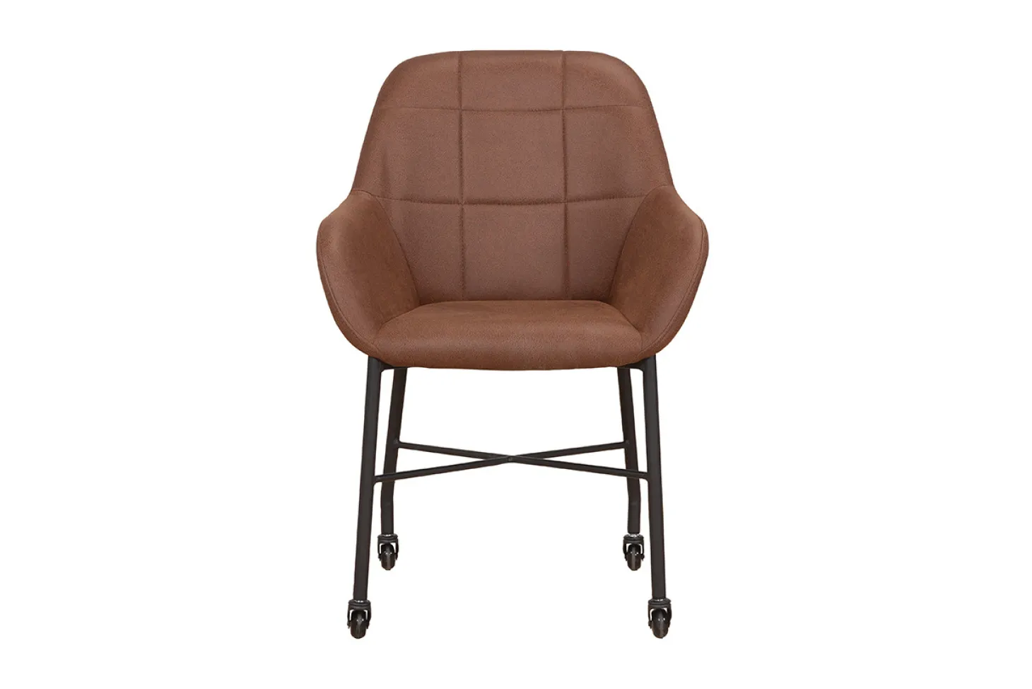 Stoel Nevada is een trendy en stijlvolle verrijdbare eetkamerstoel. Het model is voorzien van slanke metalen poten met soepele wieltjes, hierdoor is de stoel met het grootste gemak te verplaatsen. De kuipstoel heeft een zeer nette afwerking en sierstiksel op de rugleuning, dit geeft de stoel een stoer karakter. Plaats eetkamerstoel Nevada aan een rechte of ovale eettafel en creëer uw eigen stijlvolle eethoek. Dit model is enkel als set van 2 stuks leverbaar.
