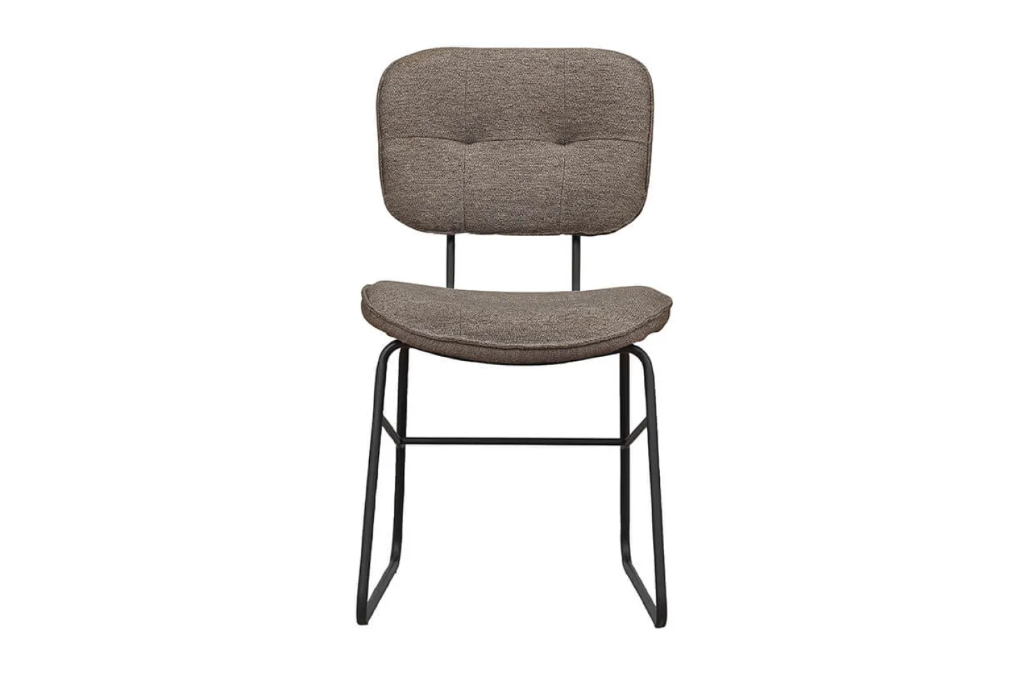 Stoere industriële eetkamerstoel met slank metalen onderstel. Prijs is per stuk in stof Supreme. Uitsluitend leverbaar per set van 2 stuks.
