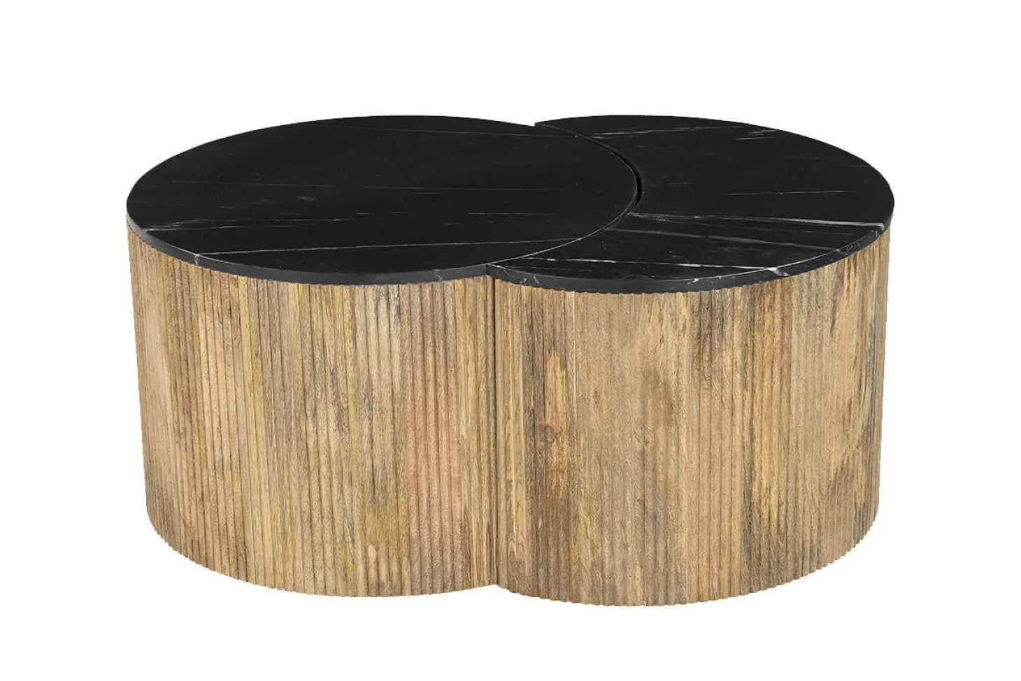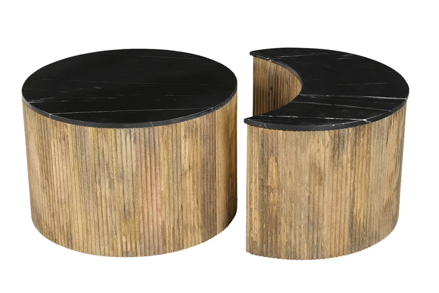 Set van 2 organisch gevormde salontafels met luxe marmer bovenblad en onderstel van mango hout. Hoogwaardige kwaliteit en luxe design.