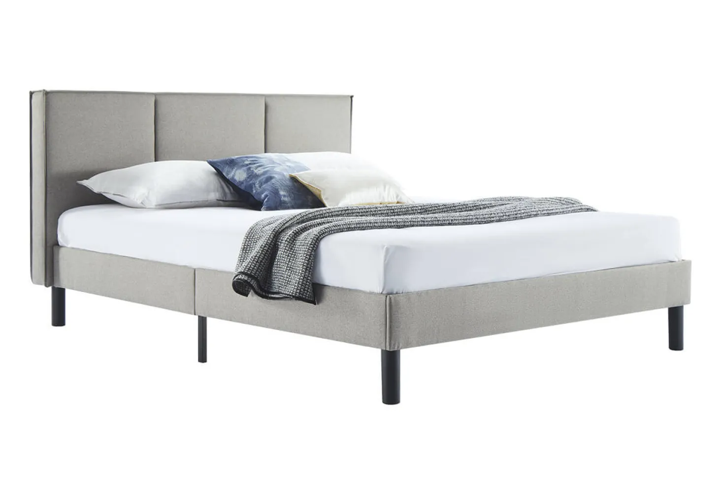 Compleet 2-persoons bed met strakke vormgeving en luxe hoofdbord. Past in iedere slaapkamer.