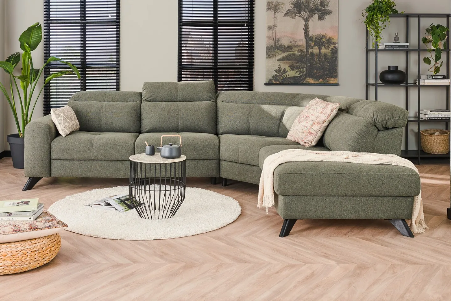 Moderne hoekbank met optioneel elektrisch relaxsysteem +€149. mogelijkheid in Stofcategorie 1 bekleding. Leverbaar in diverse kleuren en bekledingen.