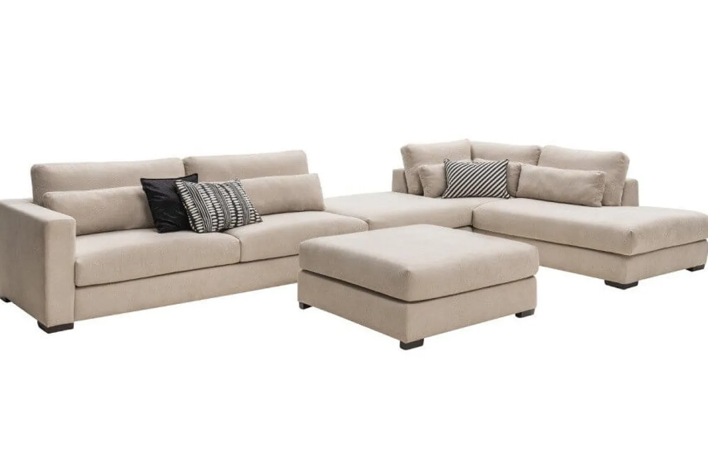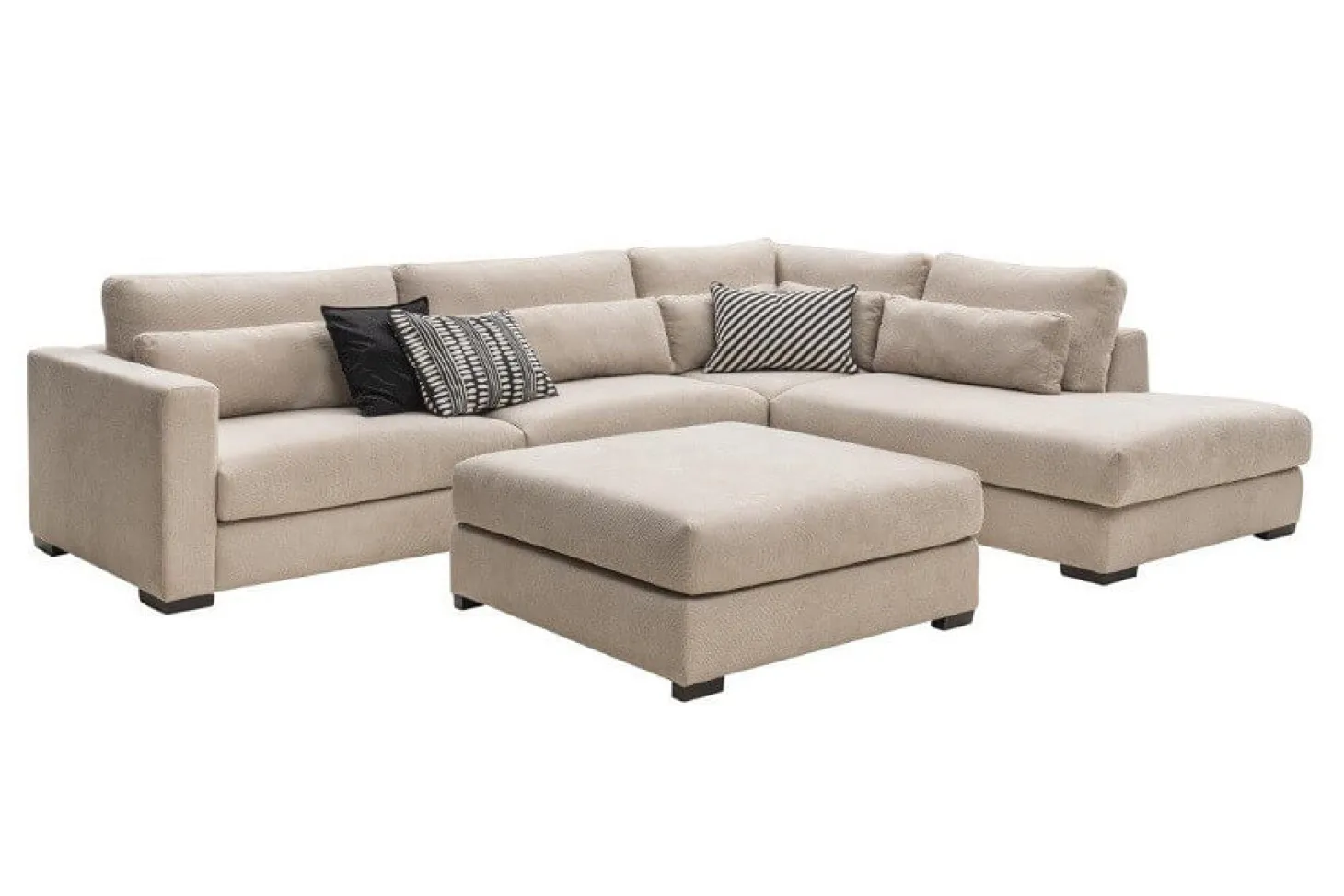 Liefhebbers van comfortabel en zacht zitten kiezen voor de hoekbank Santorini. Deze hoekcombinatie heeft losse kussens en bijpassende comfortkussens. Leverbaar in verschillende hoekopstellingen maar ook als losse bank en bijpassende hocker te leveren. Diverse kleuren en bekledingen mogelijk.