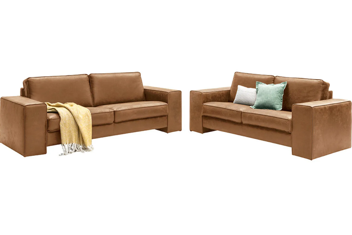 Strakke bank met moderne uitstraling en super-zitcomfort. Afgebeeld in Western Leder met luxe inside-out stiksel (model Cartier). Prijs in bekleding uit categorie 1.