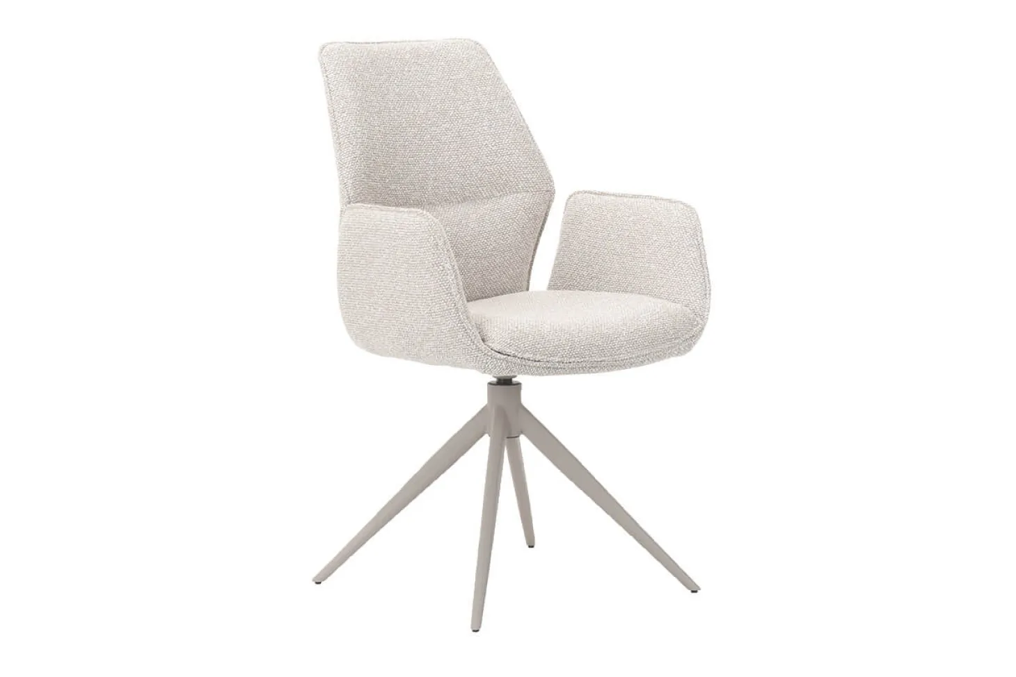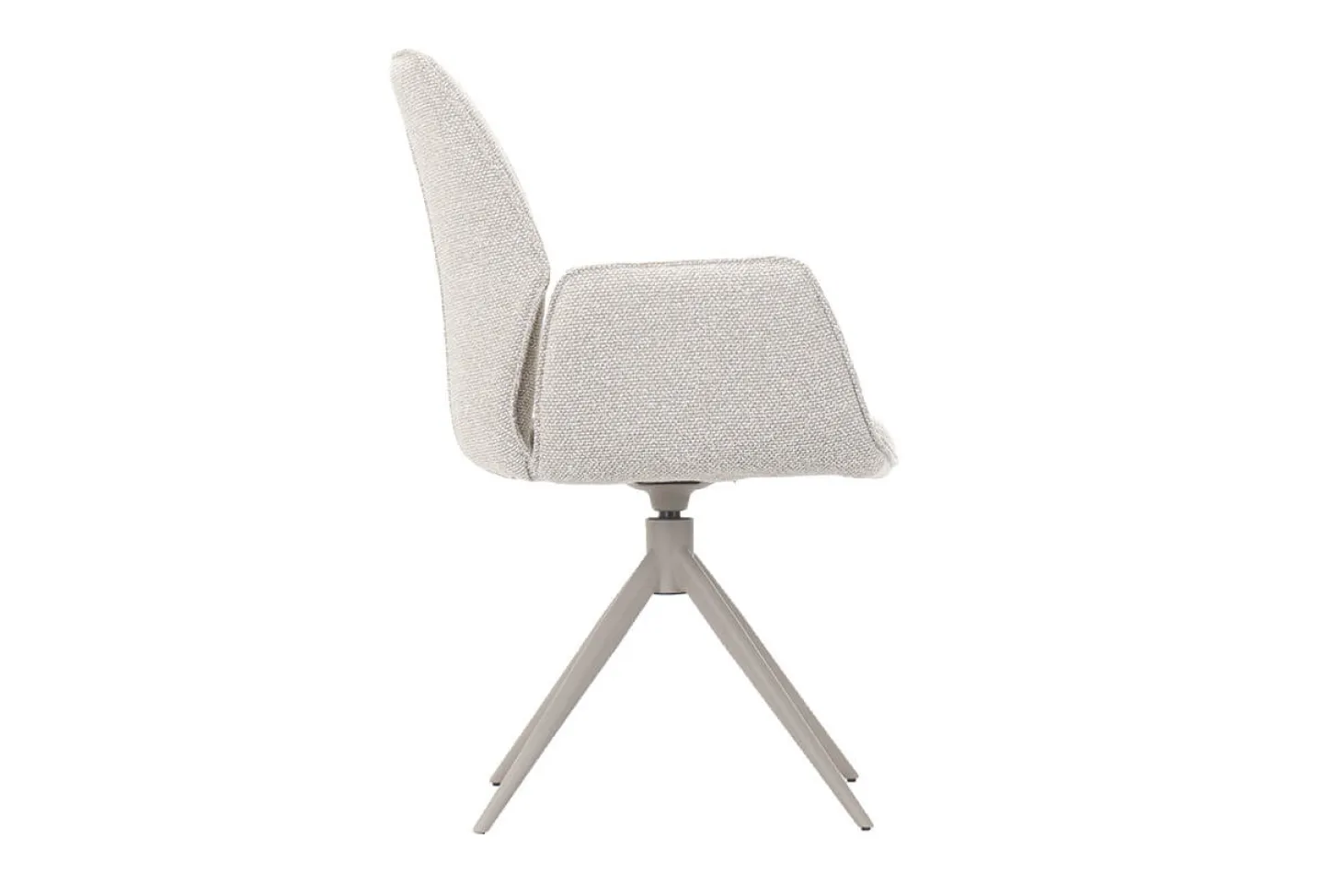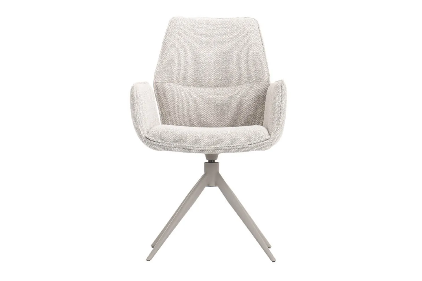 De Savona eetkamerstoel in naturel of taupe combineert een modern design met optimaal zitcomfort. De zachte, gemêleerde stof in een natuurlijke tint geeft de stoel een luxe en eigentijdse uitstraling. Dankzij de rondlopende armleuningen en comfortabele zitting biedt de Savona een heerlijke ondersteuning tijdens lange diners of gezellige avonden aan tafel.