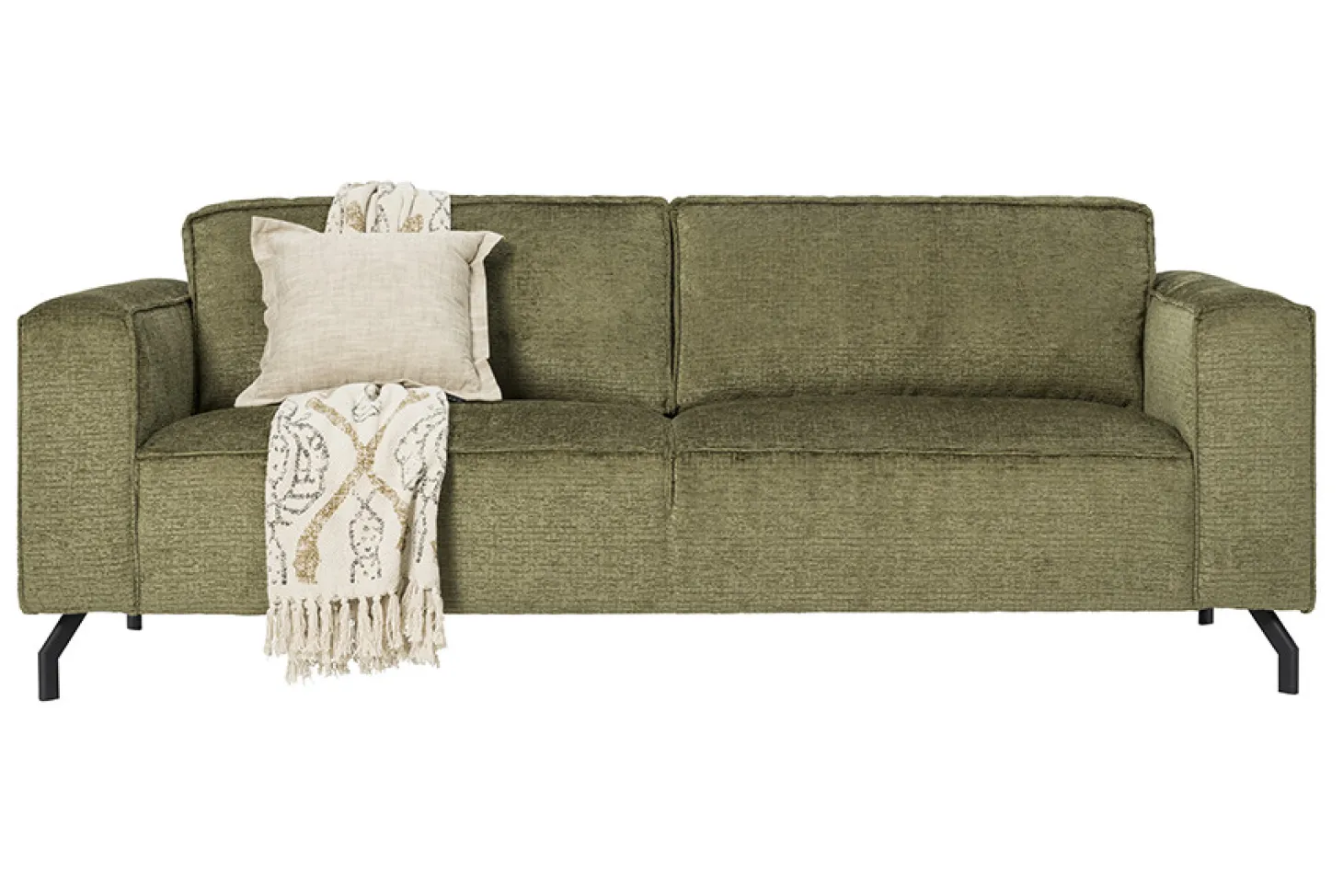 Trendy bank met retro look in stof Supreme. Dankzij de slanke poten en strakke vormgeving kan dit model gecombineerd worden in iedere woonstijl. Dit model heeft een comfortabele zit. Uitvoering en beschikbaarheid van dit outletmodel kan per vestiging verschillen. Voor al onze outletmodellen geldt: OP = OP!