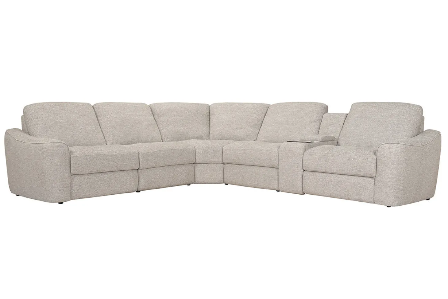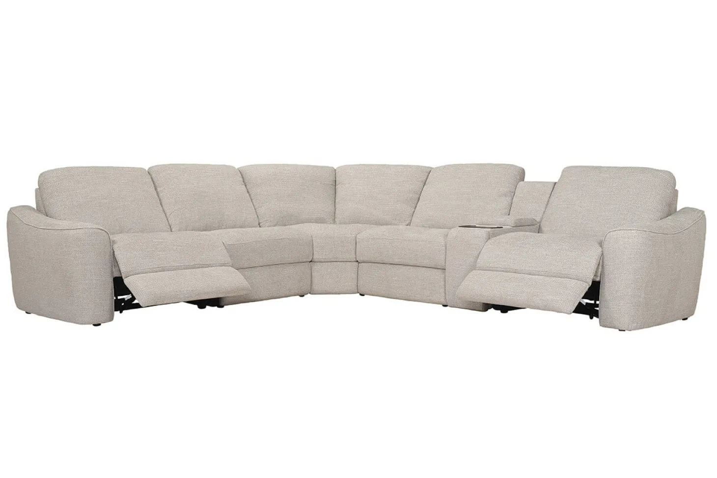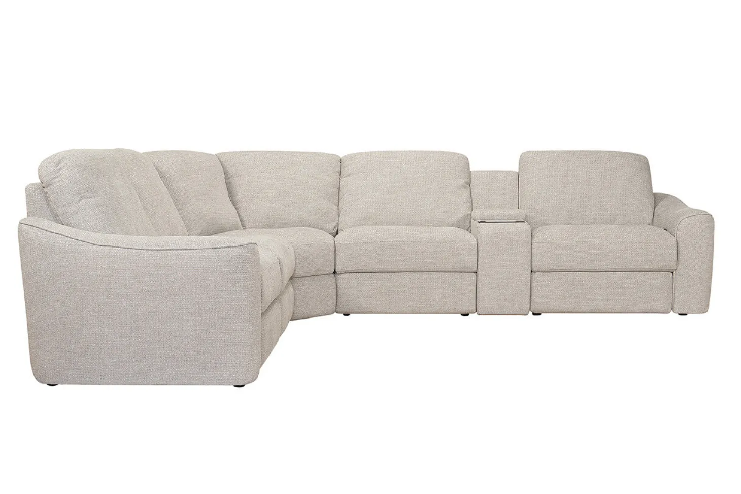Comfortabele hoekcombinatie uitgerust met handige console. Als comfortabele 3+Hoek+1½+Console+1½ zits en inclusief elektrische relaxsystemen in stof cat. 1 Supreme.