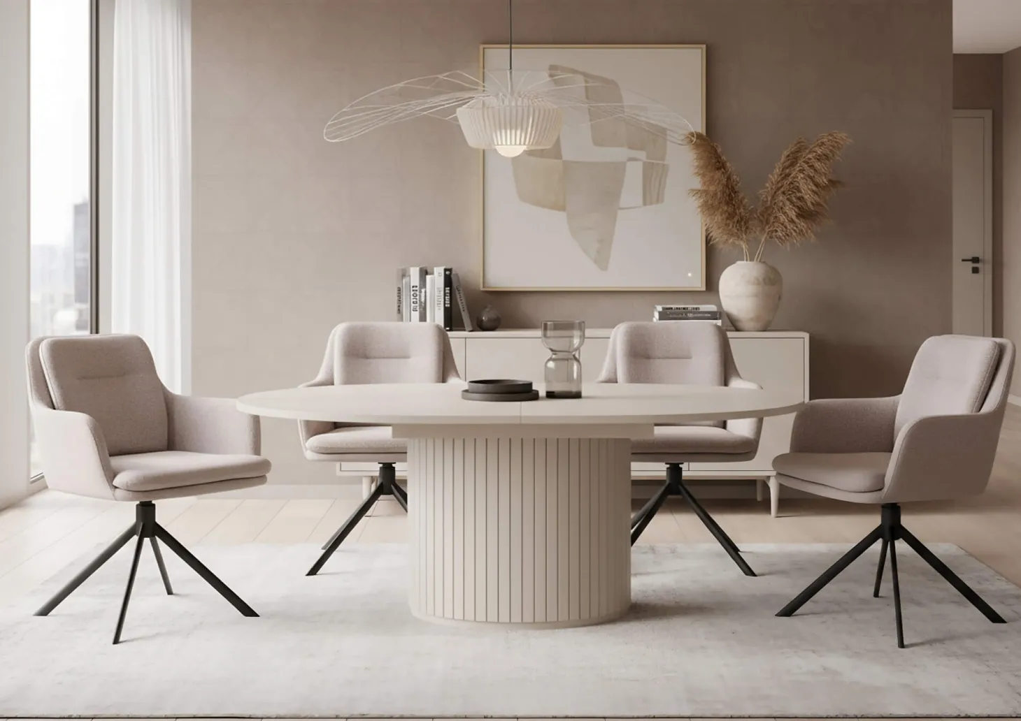 De Arezzo is een draaibare eetkamerstoel die iedere eethoek omtovert tot een stijlvol geheel. Door de trendy bouclé bekleding (zoals te zien op de foto) krijgt deze armstoel een zachte touch. Laat tijdens het tafelen je armen lekker rusten op de armleuningen. Dankzij de stoere zwarte spinpoot is dit model 360 graden draaibaar.