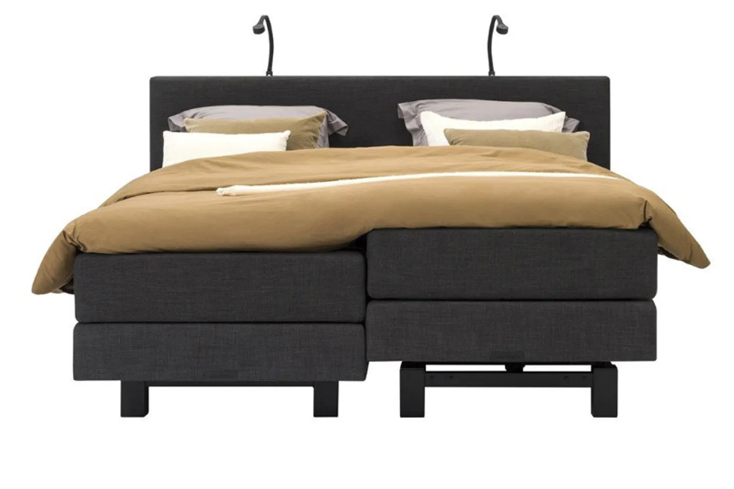 Complete 2-persoons boxspringcombinatie met industriële look. Prijs is op basis van goedkoopst beschikbare uitvoering. Uitvoering en beschikbaarheid kan per vestiging verschillen.