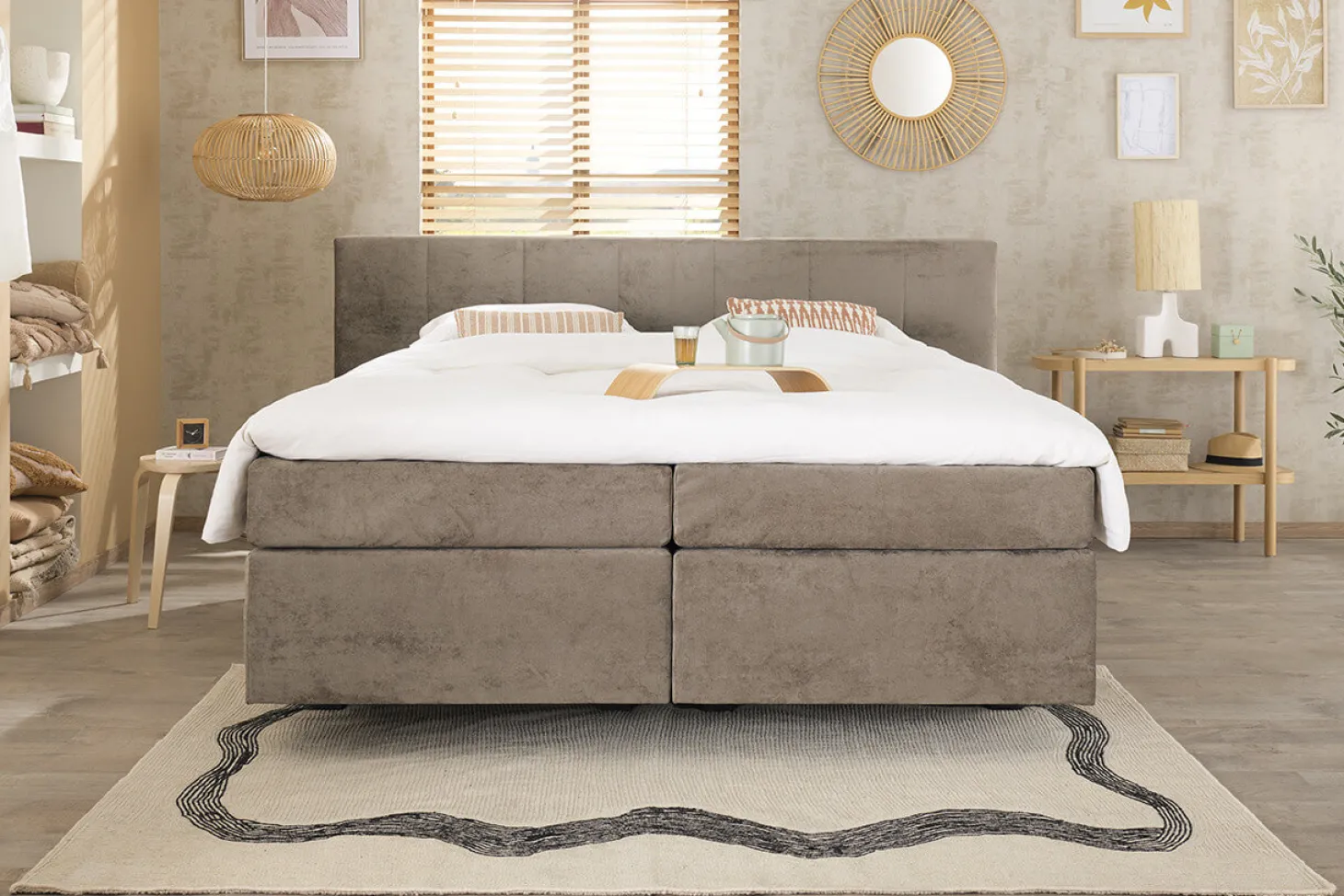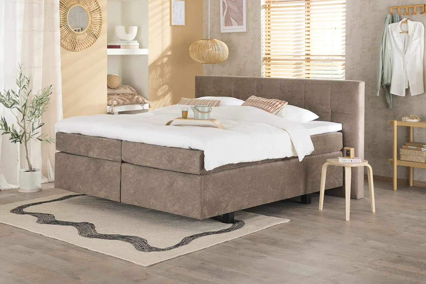 Complete 2-persoons boxspringcombinatie met landelijke vormgeving. Prijs is op basis van goedkoopst beschikbare uitvoering. Uitvoering en beschikbaarheid kan per vestiging verschillen.