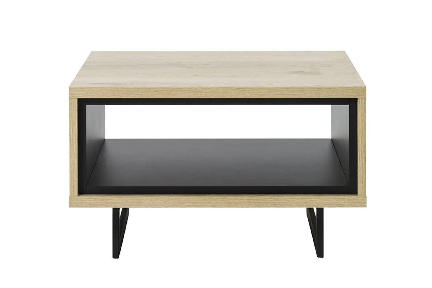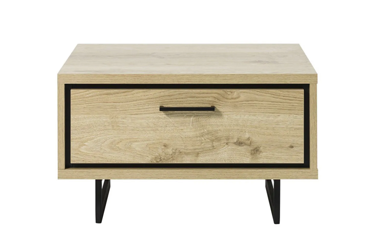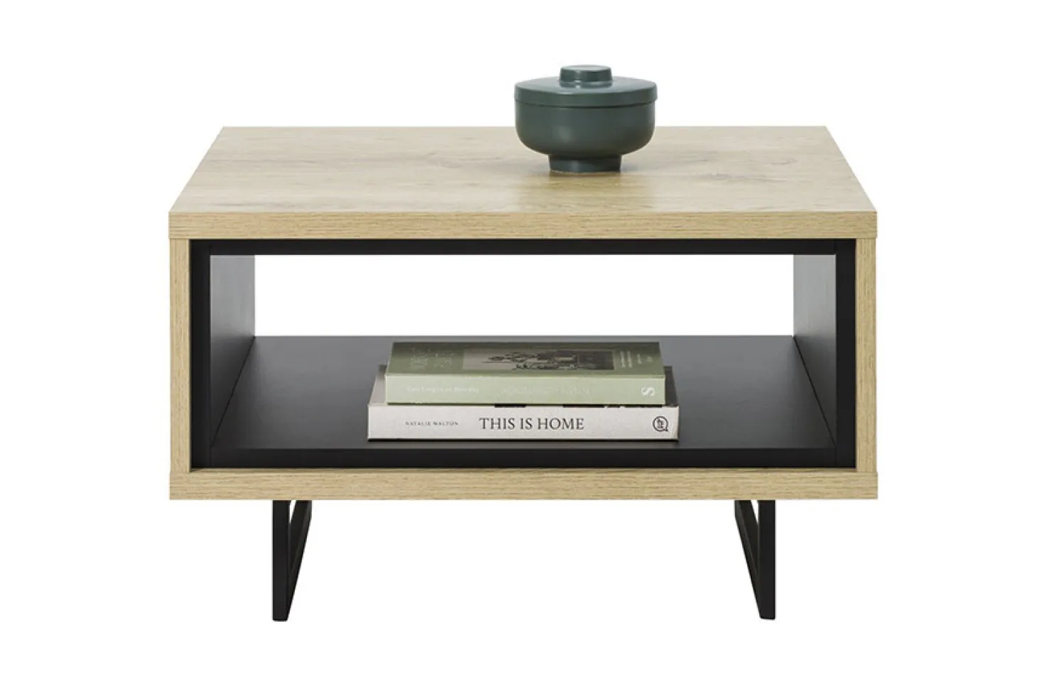 Woonprogramma Bordeaux heeft een industriële look met strakke lijnen en zwarte accenten, uitgewerkt in nature oak.