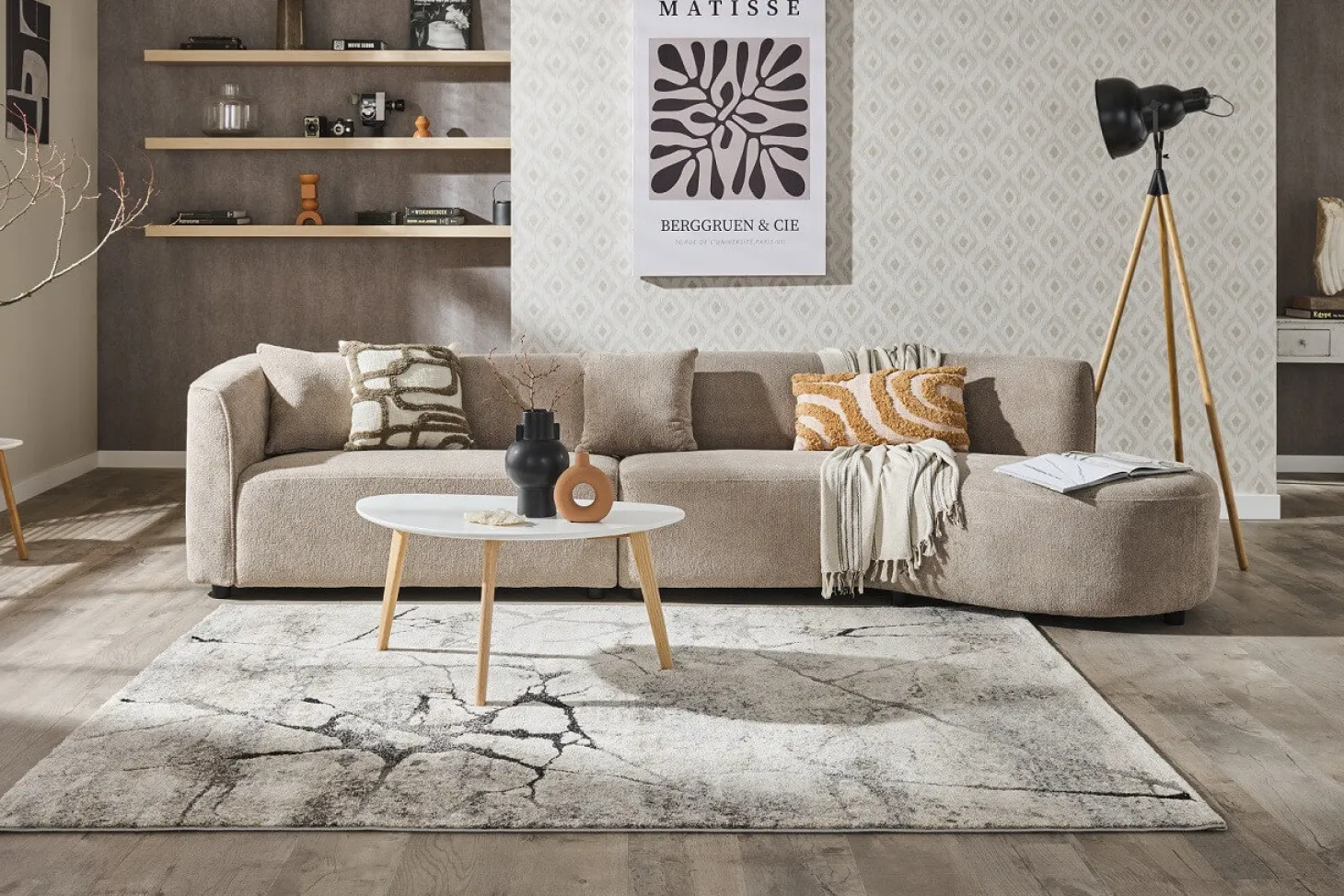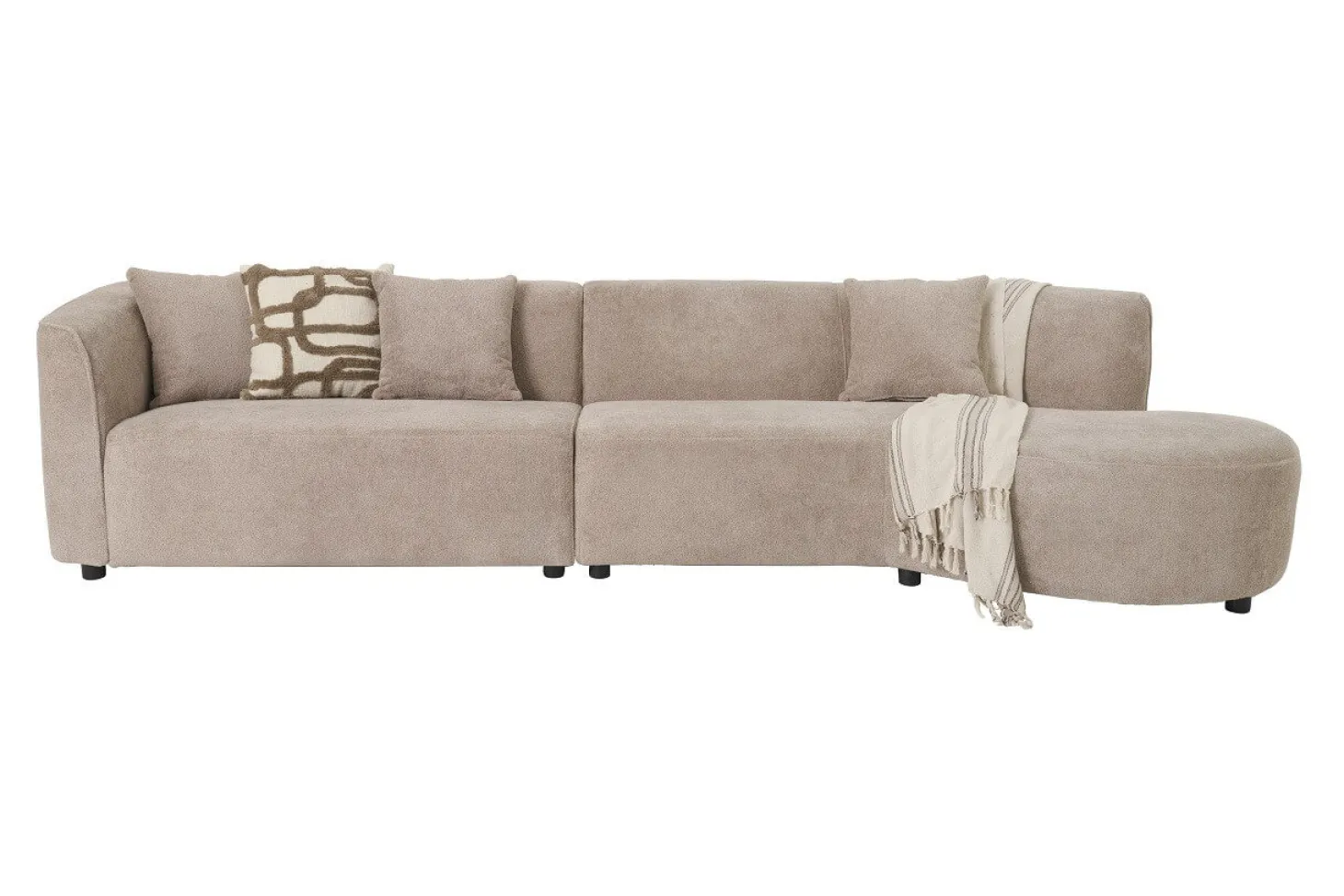 De ronde organische longchair maken van model Cliff een trendy zitmeubel, helemaal in de trend van nu vormgegeven. Het design van de bank zorgt voor voldoende ruimte om met meerdere personen te zitten, liggen en loungen. In de afgebeelde bouclé-stof is dit model zeer geliefd en passend in ieder interieur. En snel leverbaar!