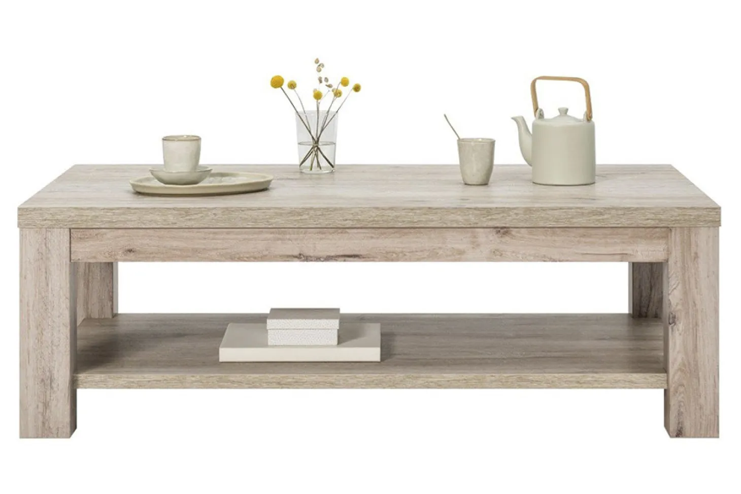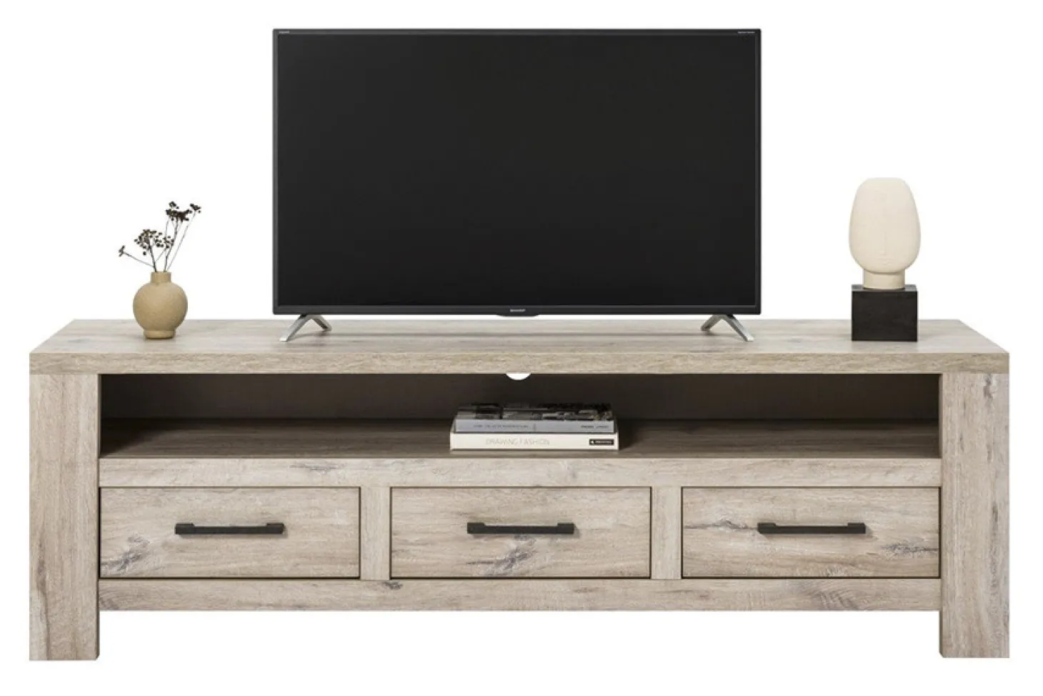 Compleet interieur in kleurstelling mud oak. Dit zit er allemaal bij: TV/Audio/Hifi-Dressoir – Eetkamertafel – Salontafel. Alle items zijn ook los leverbaar.