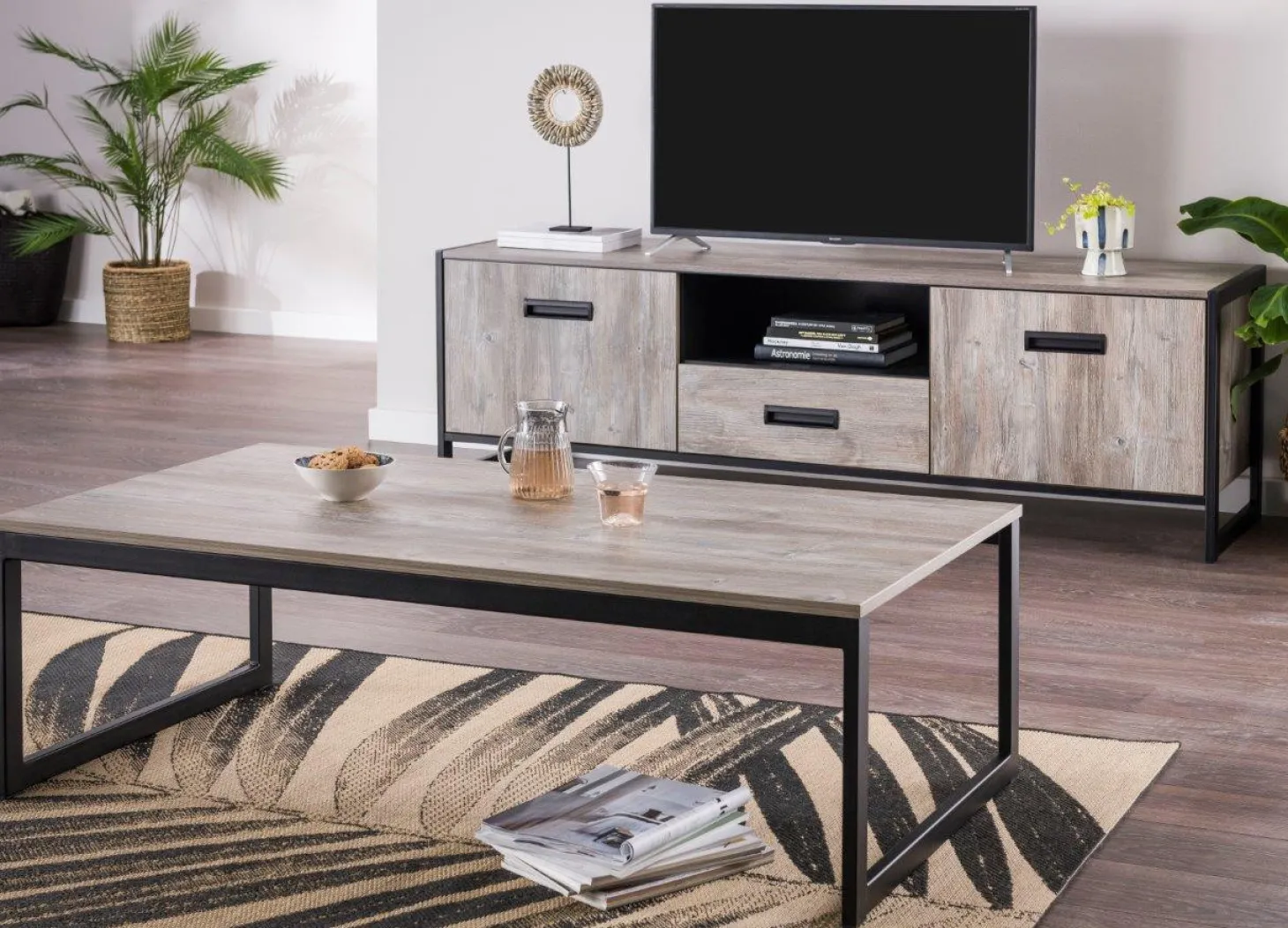 Compleet interieur in kleurstelling graphite oak. Beschikbaarheid en samenstelling van de set kan per vestiging verschillen. Prijs is op basis van goedkoopste samenstelling