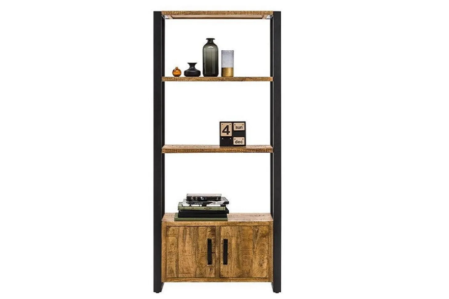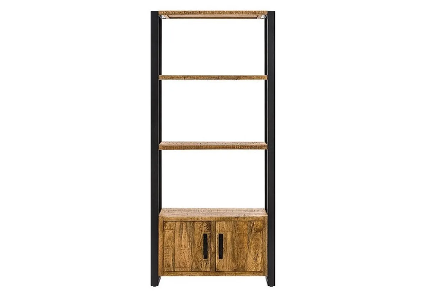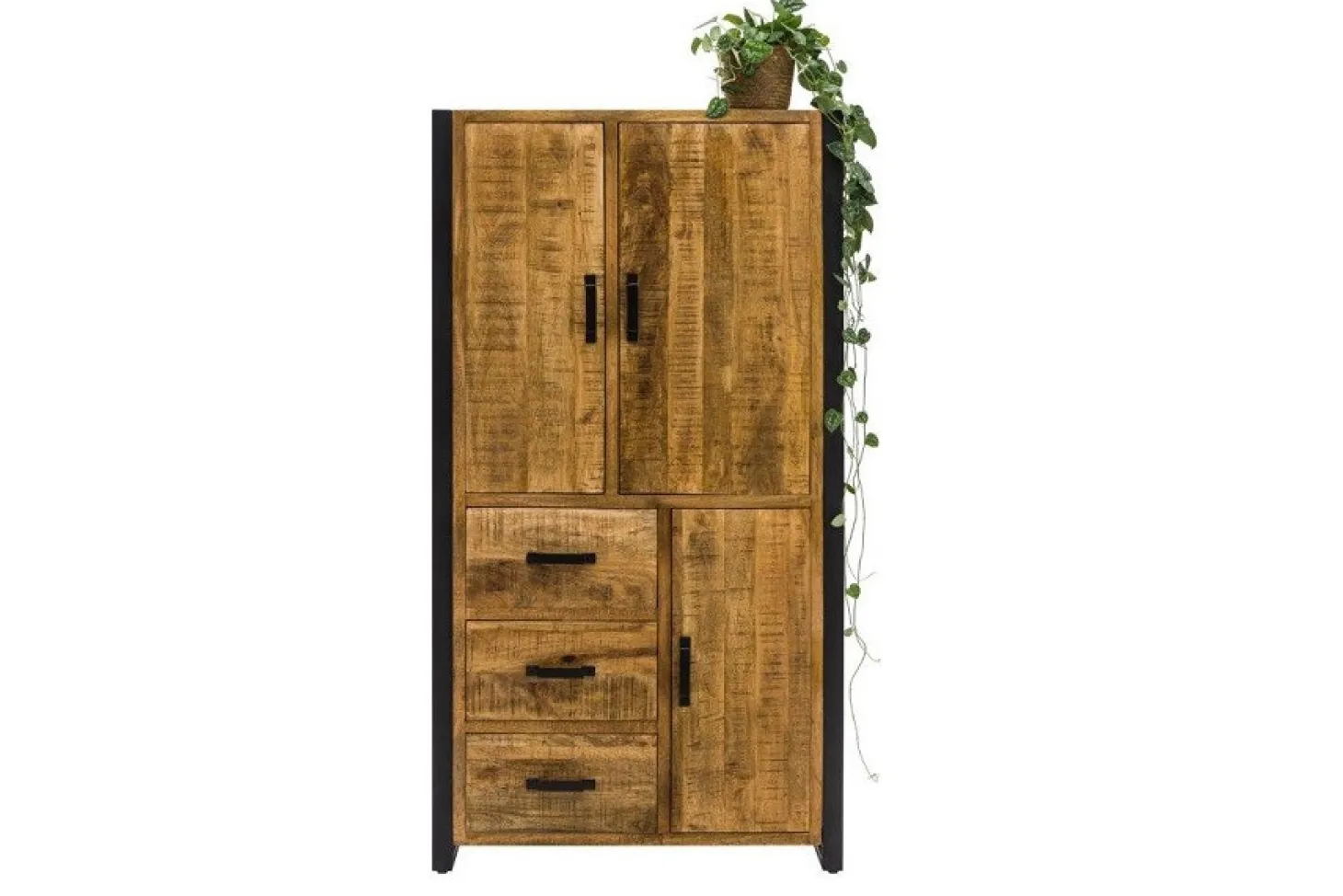 Industriële wandkast Glenwood in mangohout. De prachtige combinatie van donker metaal met gevlamd hout geeft het een stoer en robuust karakter. In meerdere maten leverbaar en ook bijpassende meubels uit dezelfde serie beschikbaar.