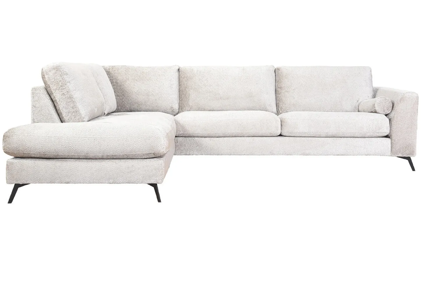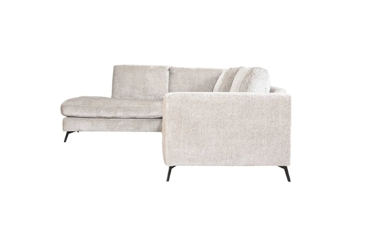 Elegante hoekbank met slanke poten en een luchtige uitstraling. Leverbaar in diverse stoffen en kleuren. Ook gespiegeld verkrijgbaar. In stof cat A.