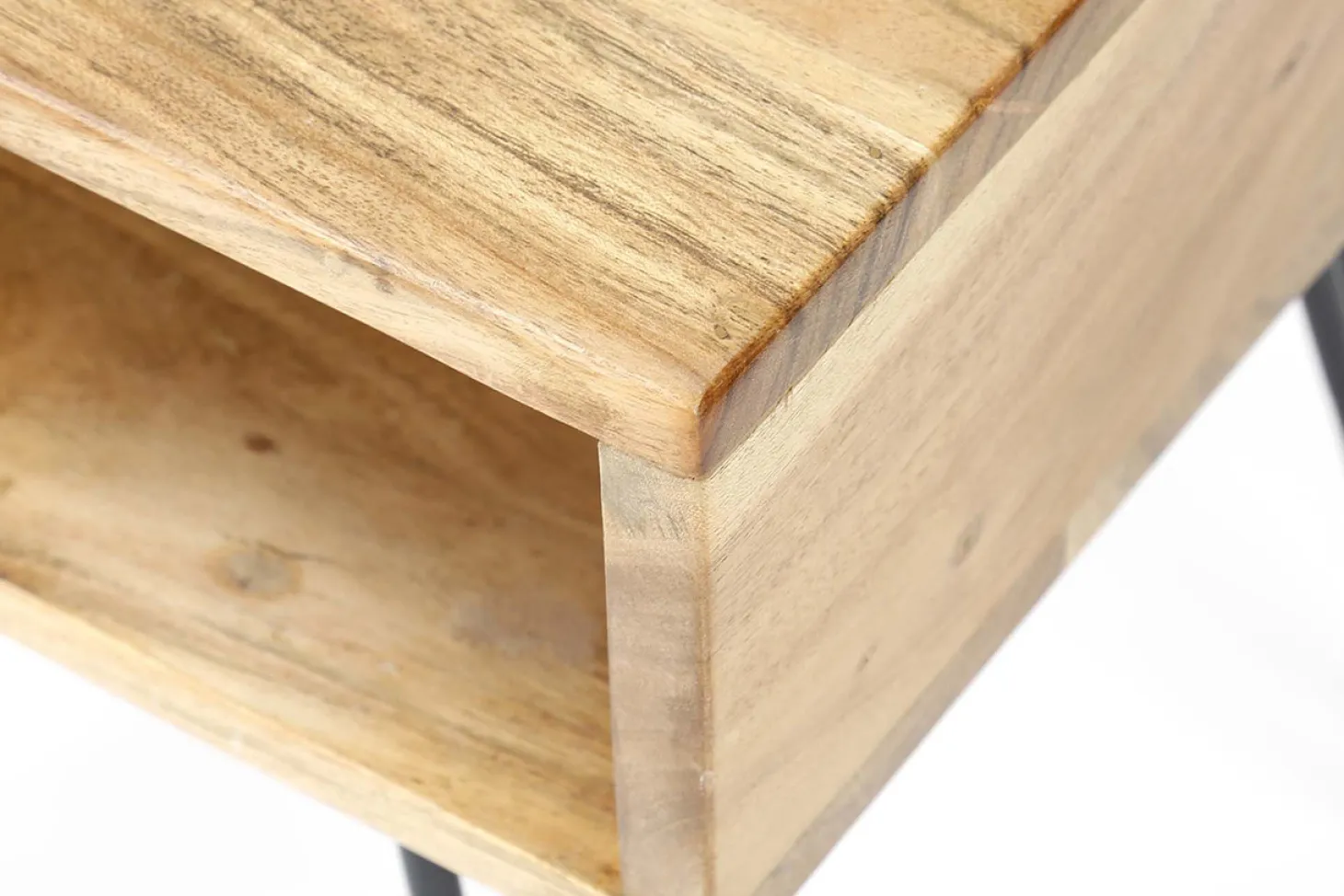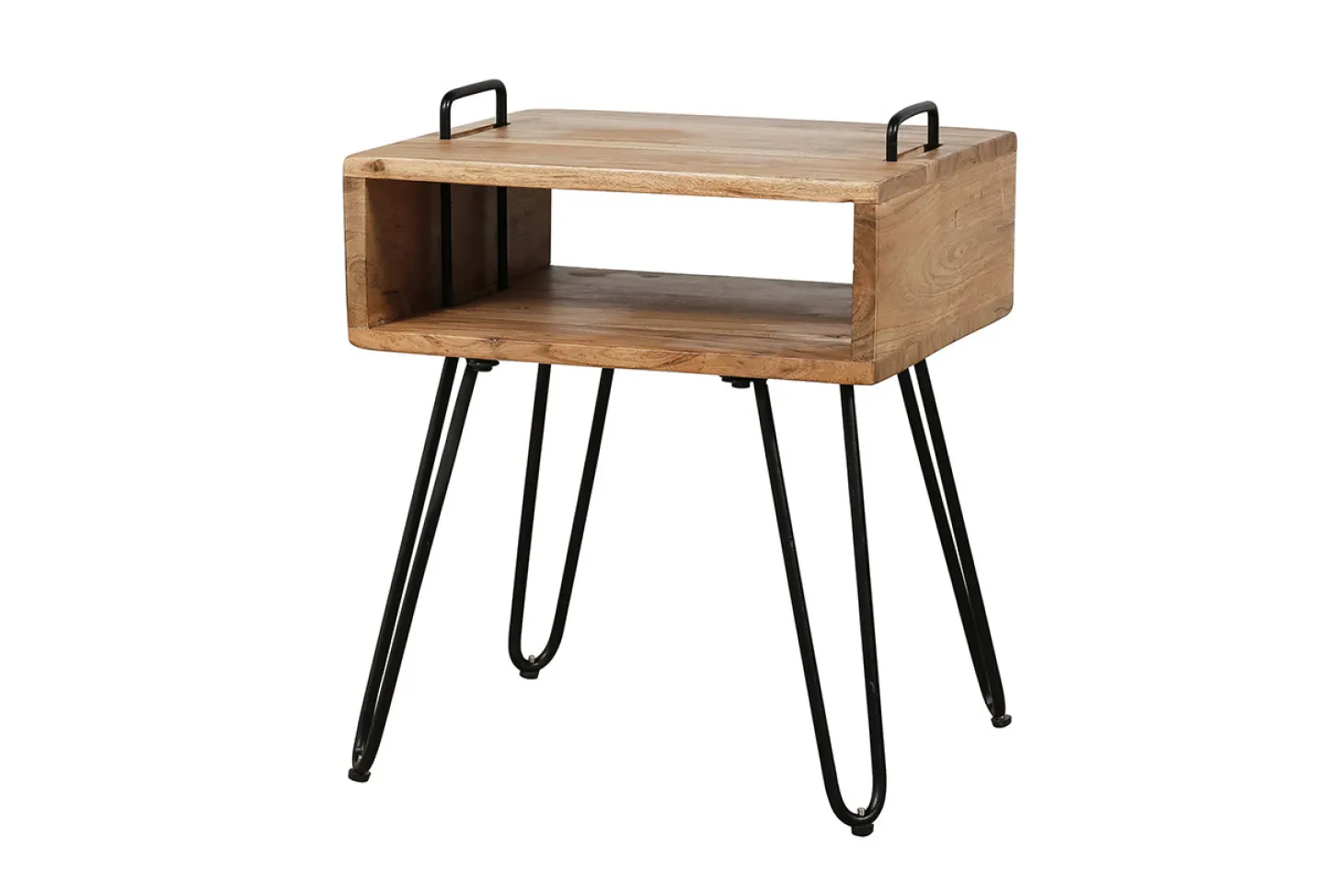 Stoere bijzettafel met handvatten en opbergvak in acacia naturel. Afmeting (bxdxh) ca. 40x34x48 cm. Ook perfect als nachtkastje.