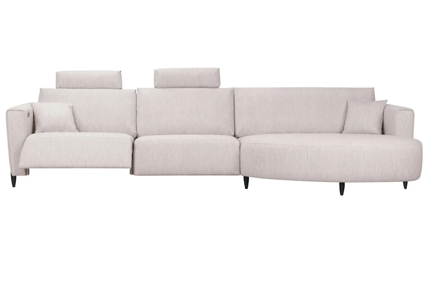 Design loungebank met organisch gevormde longchair. Zoals afgebeeld inclusief elektrisch relaxsysteem en 2 hoofsteunen in stof cat. 1.