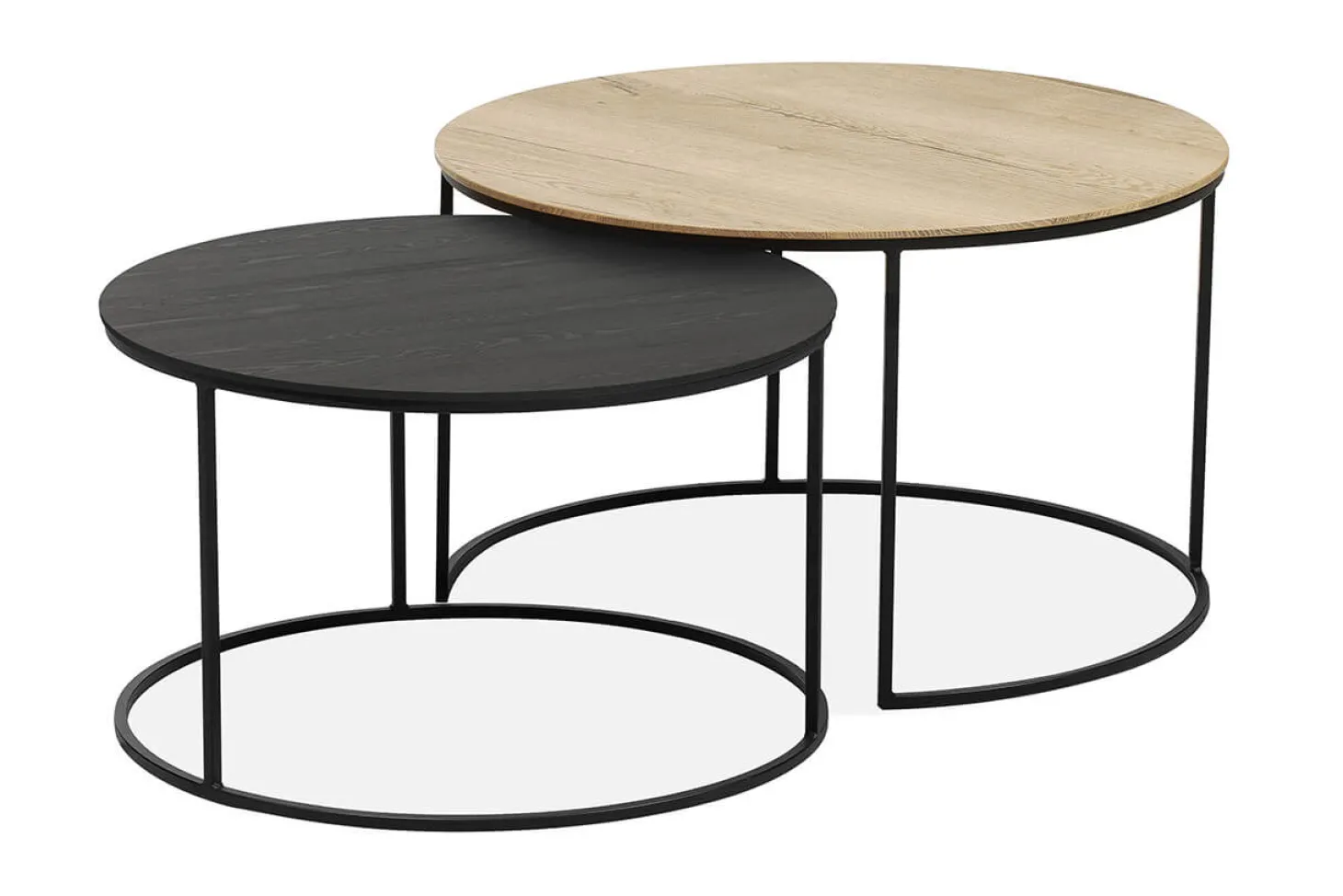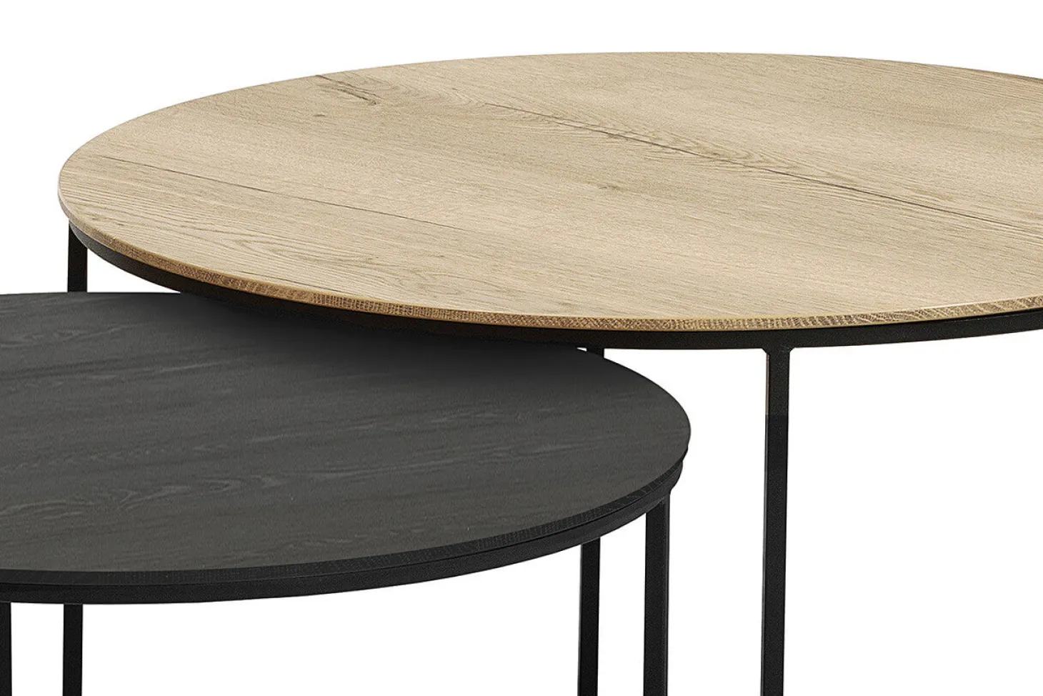 Salontafelset bestaande uit 2 ronde tafels met metalen onderstel. Ook bijpassende meubels uit dezelfde serie leverbaar.