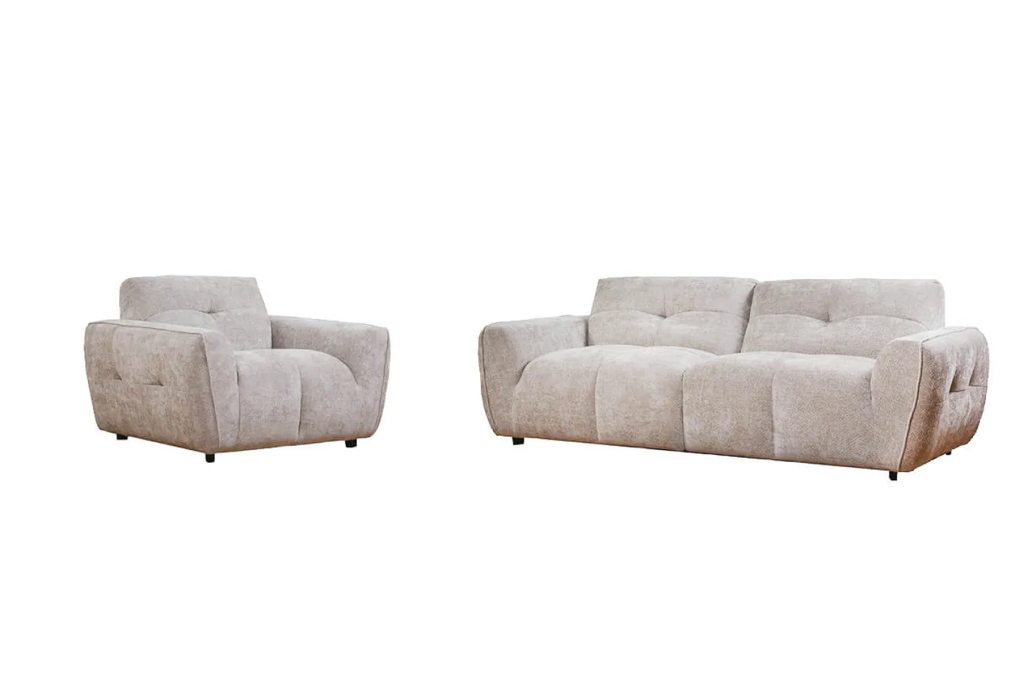 Comfortabele 3+1-Zits Bank – Ronde Vormen & Subtiele Stiksels. Leverbaar in diverse kleuren en stoffen. Als set leverbaar.