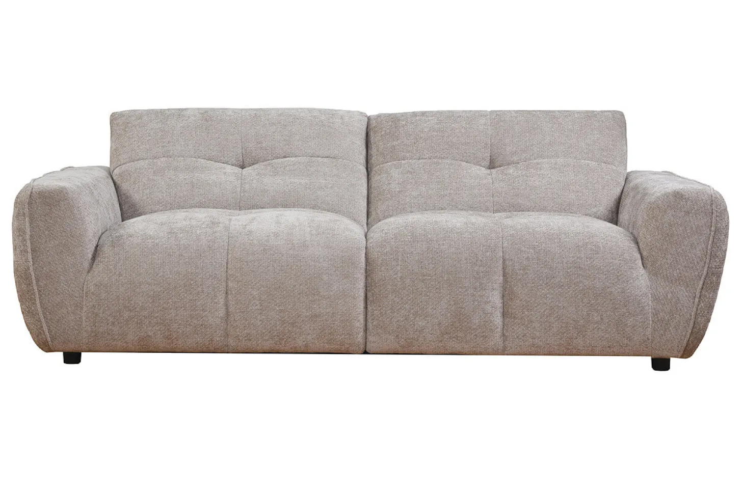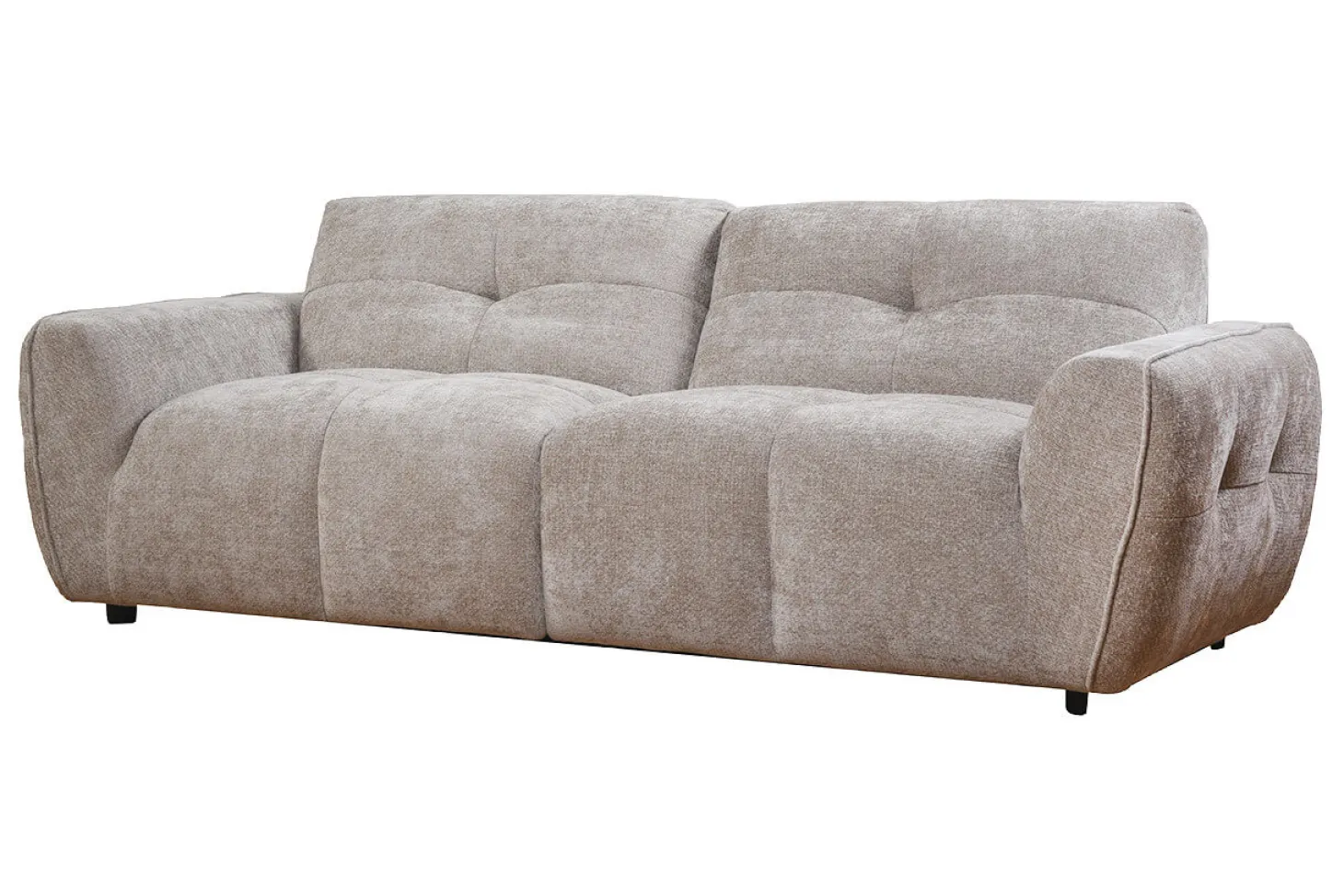 Dit model is uitgerust met geïntegreerde zit- en rugkussens, mooi afgewerkt met subtiele stiksels die de contouren benadrukken en een verfijnde textuur geven. Dit strakke stikselwerk geeft het meubel een rustige, samenhangende look zonder rommelige elementen, waardoor de bank een moderne en nette uitstraling behoudt.