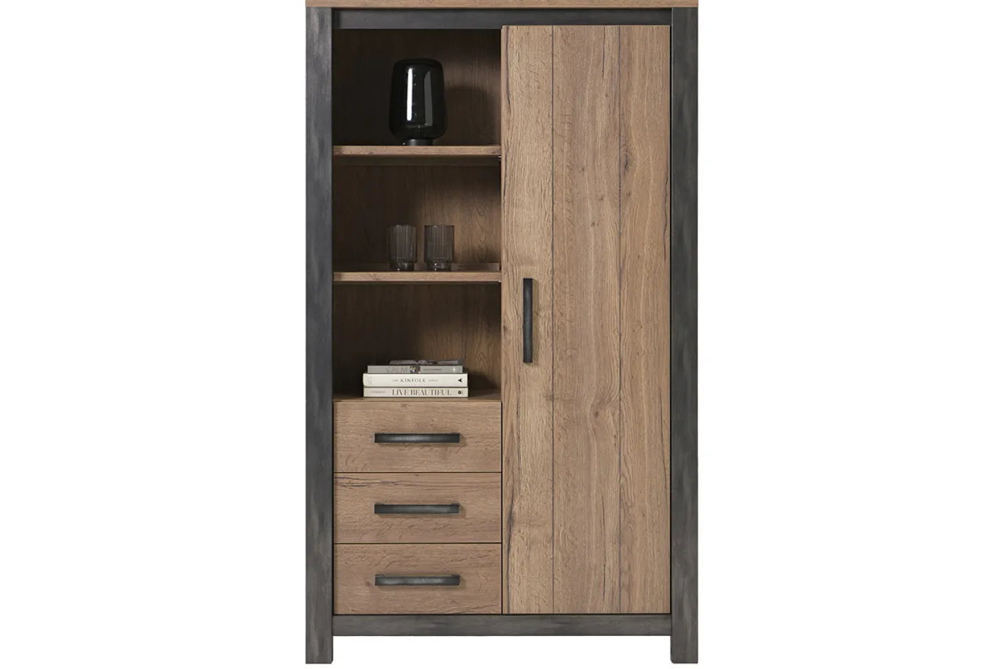 Woonprogramma Maverick is een warm en sfeervol programma in de kleur industrial tabacco. Door de warme eikenkleur gecombineerd met antraciet frame krijgt het geheel een stoere look. Deze set past in zowel een industriële, landelijke of moderne woonstijl. Liever een ander type eettafel? Eettafel Maverick is ook mogelijk in een ronde of rechthoekige uitvoering.