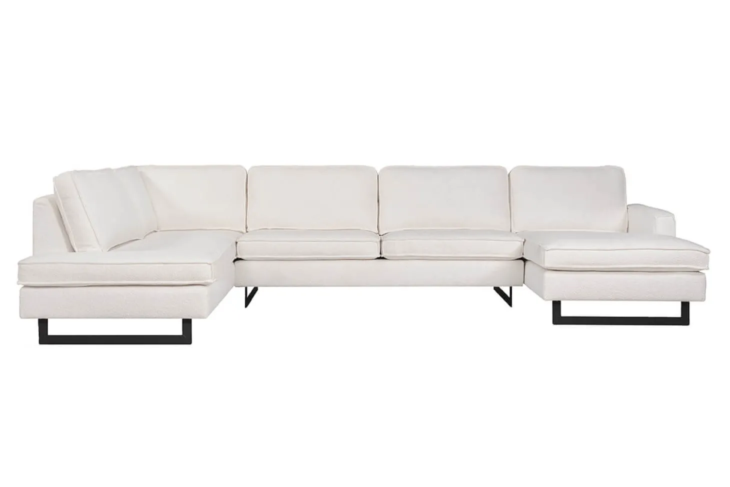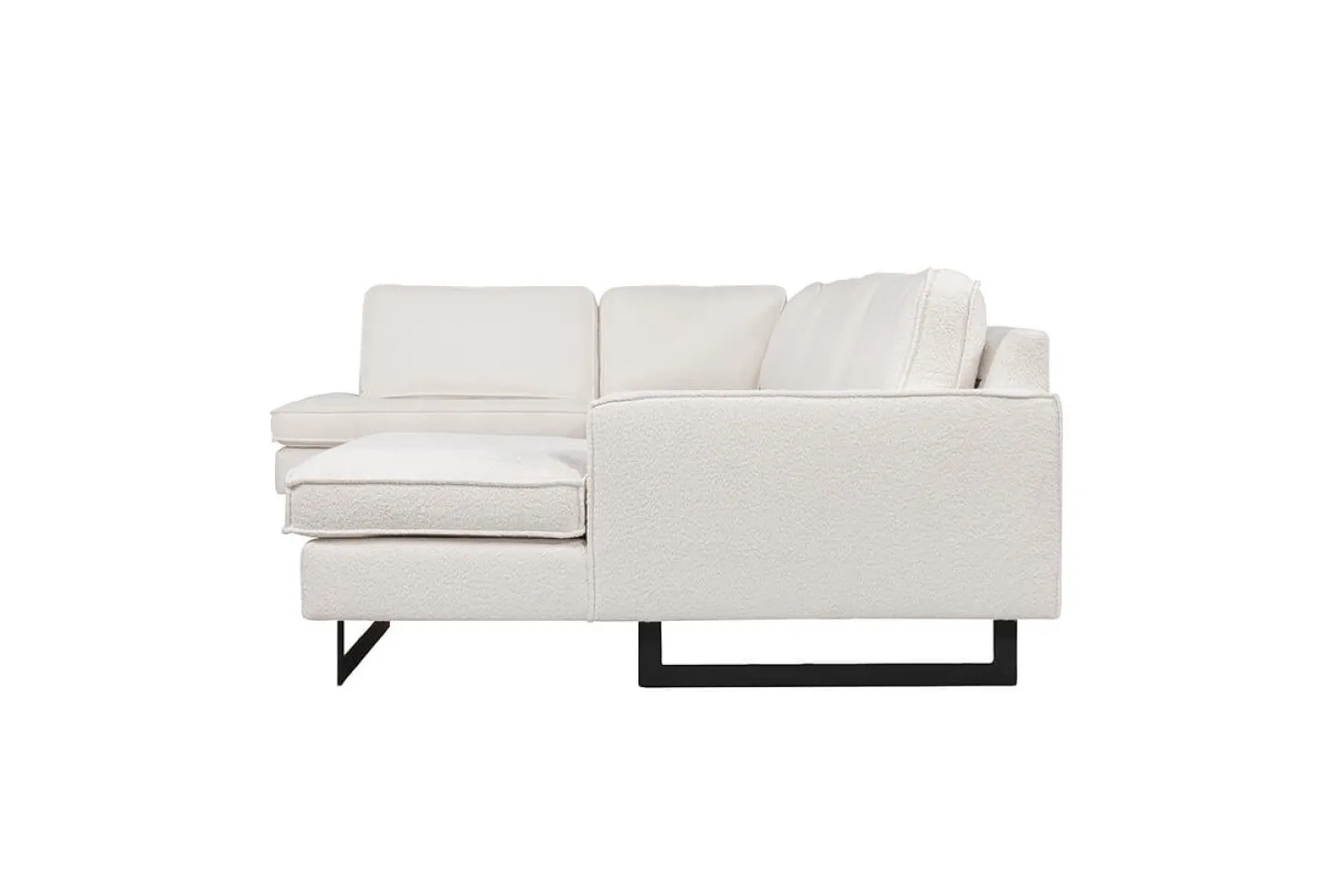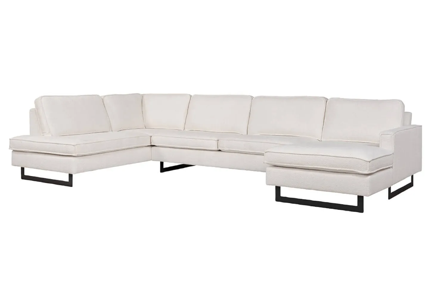 Industriële hoekbank met sledepoot en stoer stiksel. Opstelling kan ook gespiegeld. Leverbaar in diverse bekledingen, kleuren en opstellingen. Aanbieding als Terminal-1+Hoek+3 zits in stof Atletico.