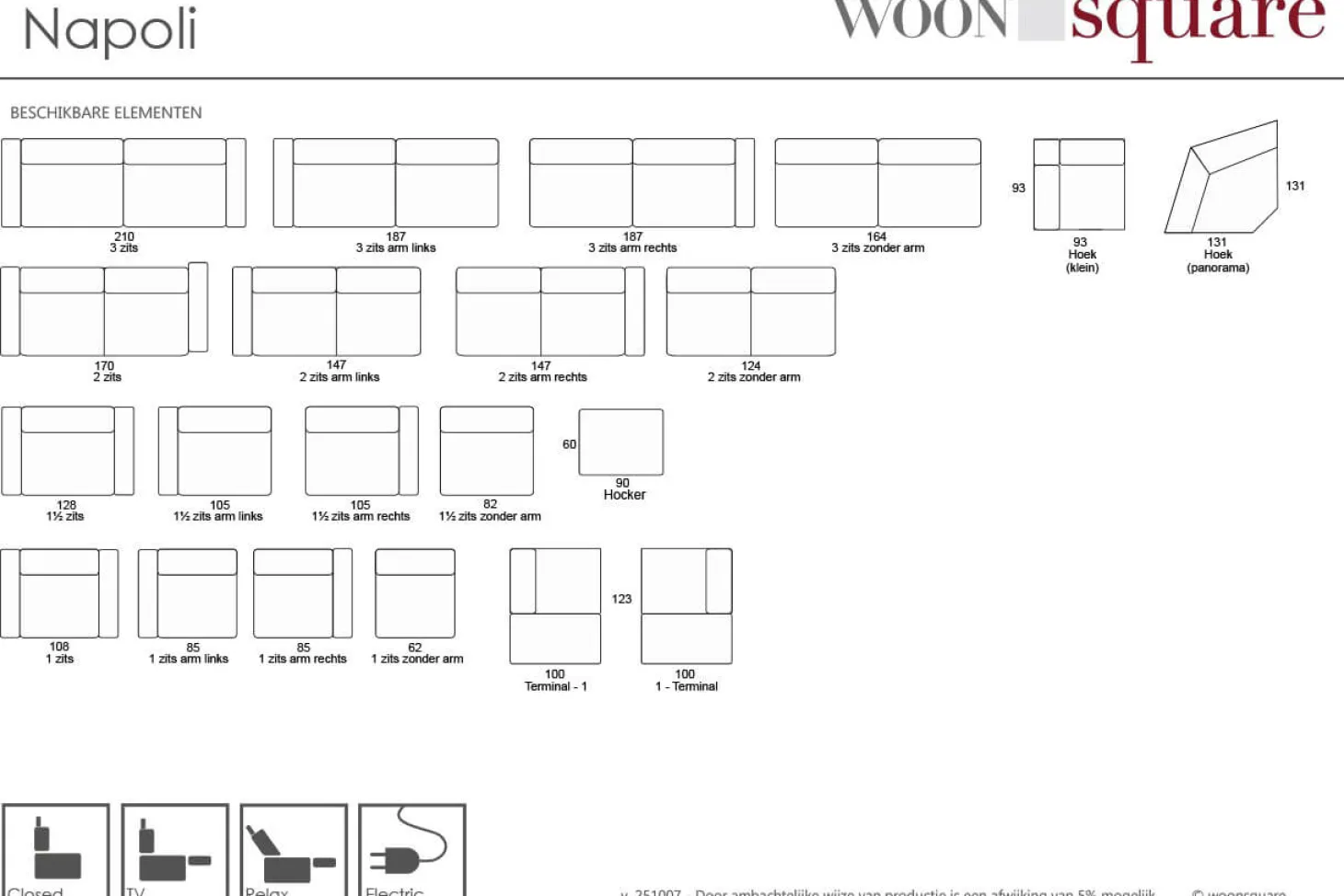 Modieuze hoekcombinatie met verstelbare hoofdsteunen. Een relaxbank waar zeer aangenaam in gezeten of gelegen kan worden. Eentje waarbij het zitcomfort uitgebreid kan worden met een elektrisch relaxsysteem. Model Napoli is geheel naar wens samen te stellen. Zo is de bank leverbaar in diverse kleuren en bekledingen. Ook zijn verschillende opstellingen zijn mogelijk; waaronder de gespiegelde opstelling, als losse 3, 2 of 1-zits. Ook leverbaar met bijpassende hocker.