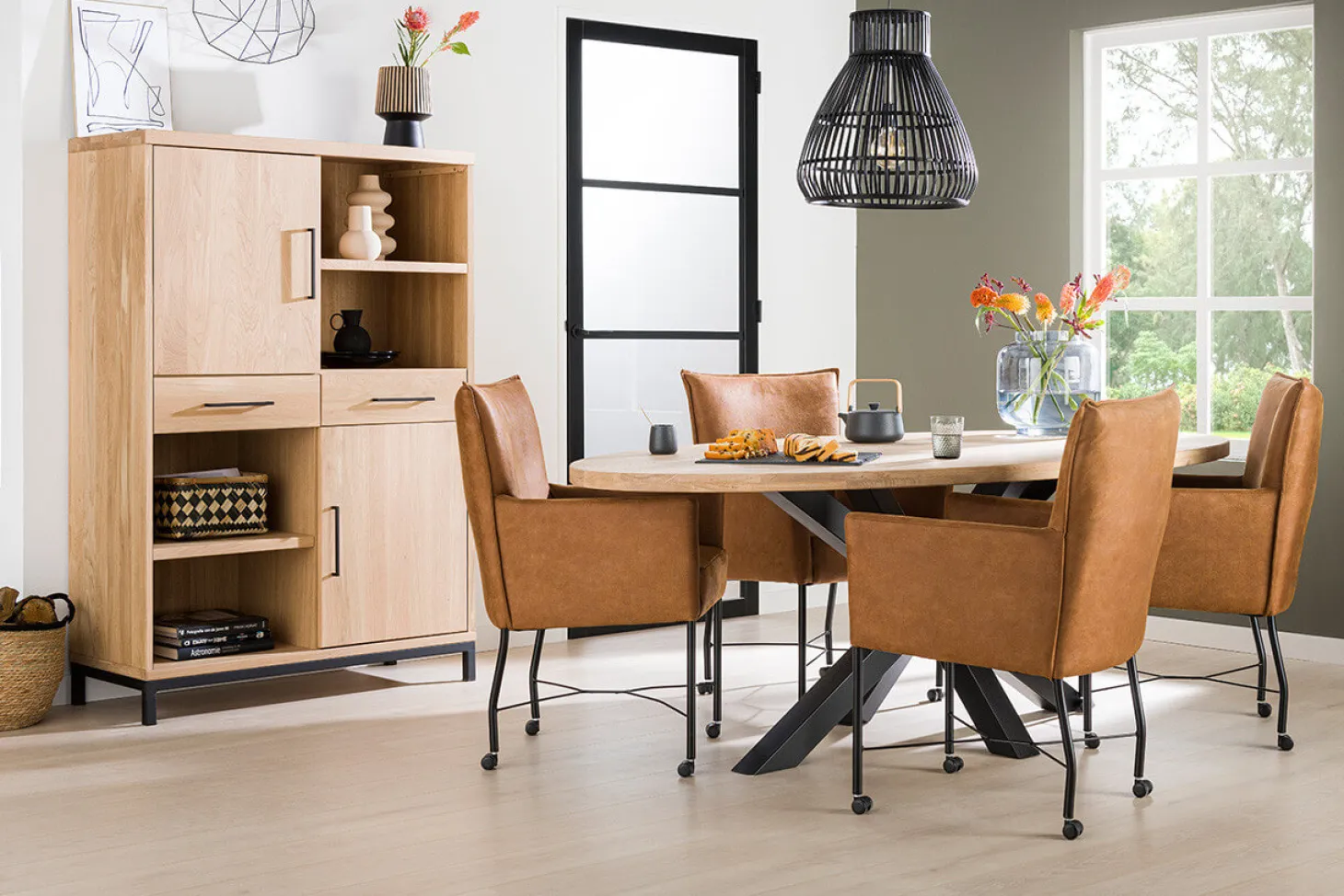 Wil je een perfecte basis voor een natuurlijk, stijlvol en tijdloos interieur? Dan is woonprogramma Oakwood dé uitkomst! Deze meubels stralen warmte en elegantie uit. Een prachtige stijl waar de schoonheid van de natural oak kleurstelling centraal staat. De natuurlijke houtnerven in de massief eiken delen brengen een gevoel van rust en verfijning aan de ruimte. Oakwood meubels zijn van hoge kwaliteit en krijgen een moderne twist door de strakke afwerking gecombineert met zwarte poten en handgrepen.
