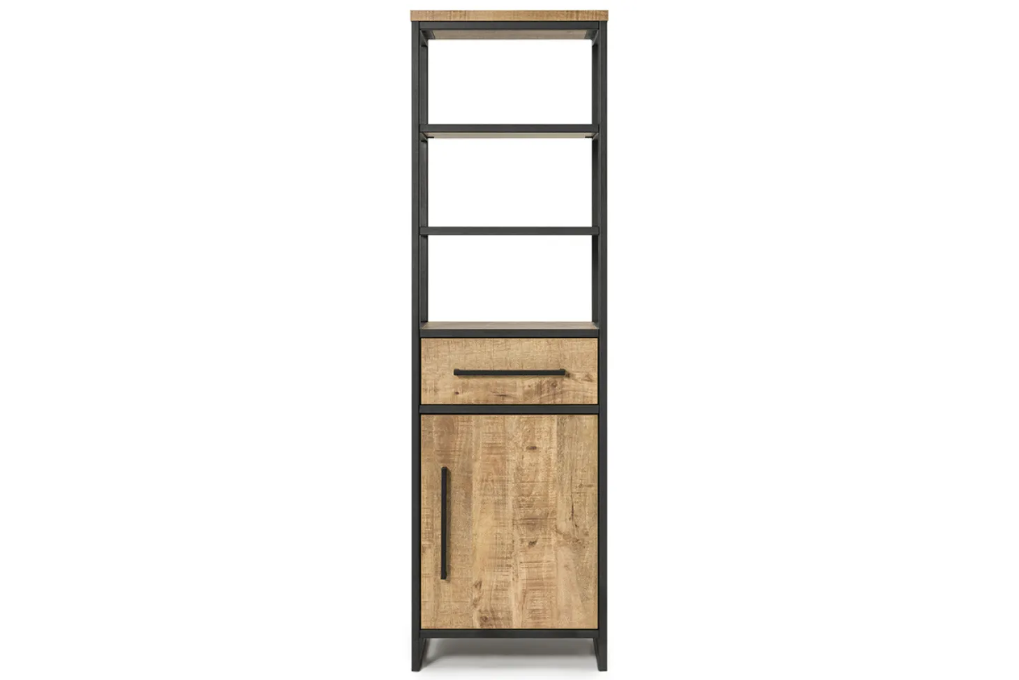 Smalle boekenkast Pasadena kleurstelling mango. Ook bijpassende meubels uit dezelfde serie leverbaar. Prijs is op basis van 60cm variant.