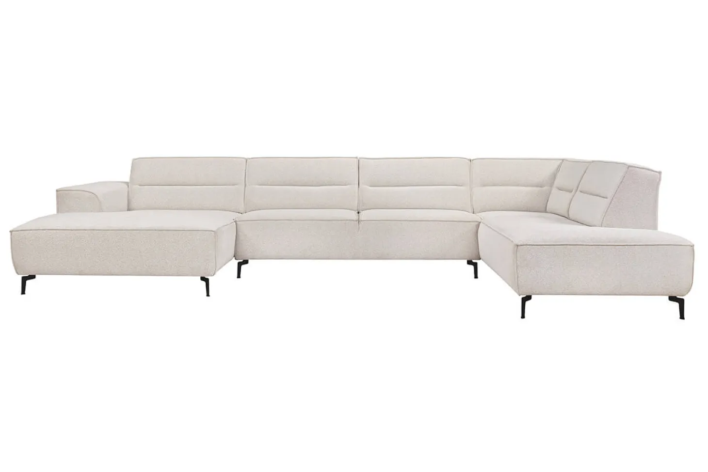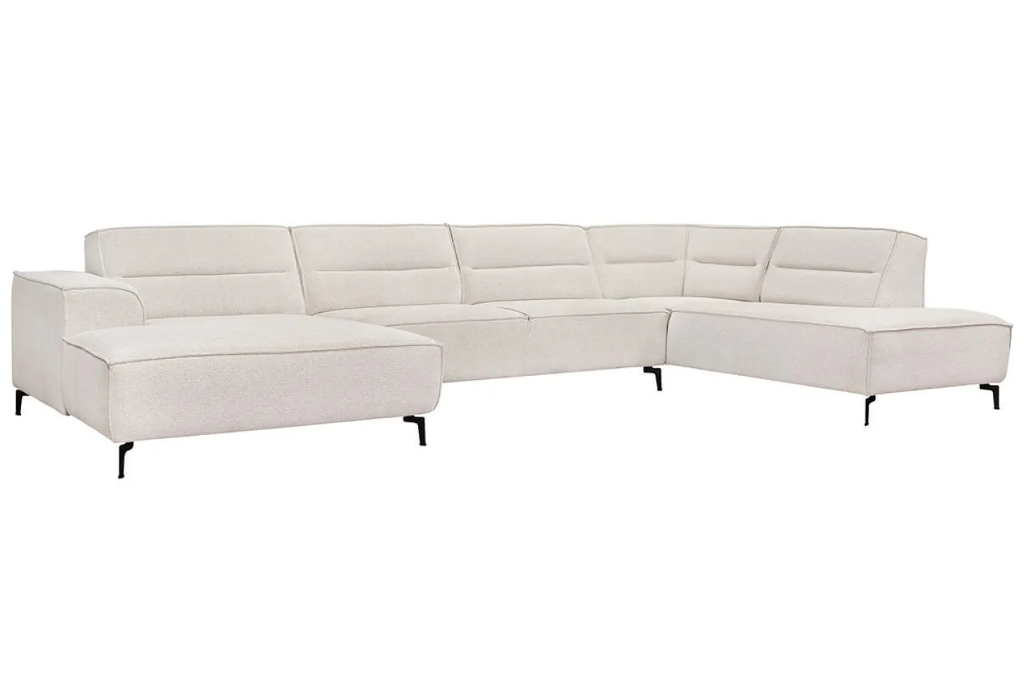 Trendy hoekbank U-vorm met stoer stiksel en strak afgewerkt design. Ook gespiegeld leverbaar of als kleinere hoekopstelling. Prijs als Terminal-1½+Hoek+3 zits in stof Atletico.